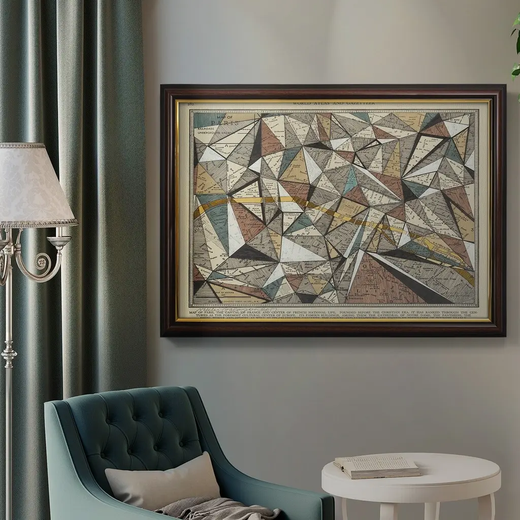 Modern Map Of Paris Premium Framed Canvas- Ready To Hang - 18x27 - Mahogany