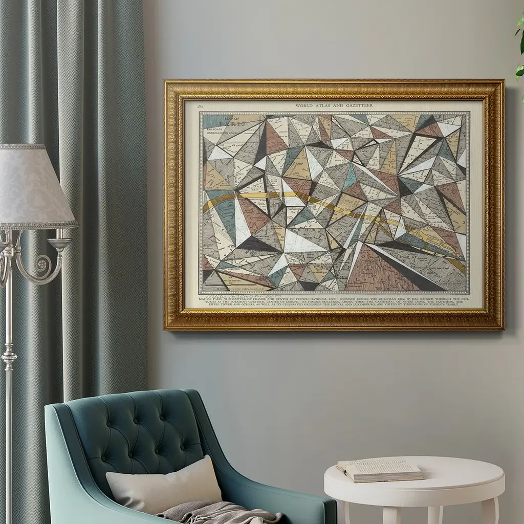 Modern Map Of Paris Premium Framed Canvas- Ready To Hang - 24x36 - Gold