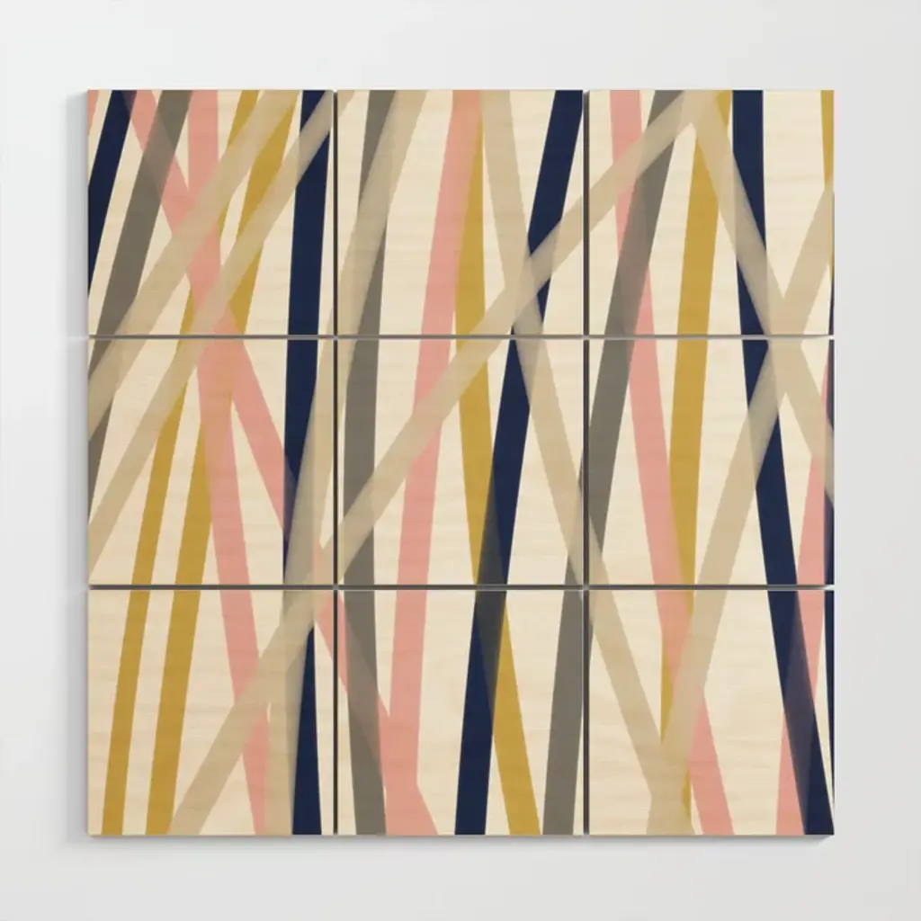 Modern Multicolor Geometric Abstract Art With Overlapping Shapes Wood Wall Art
