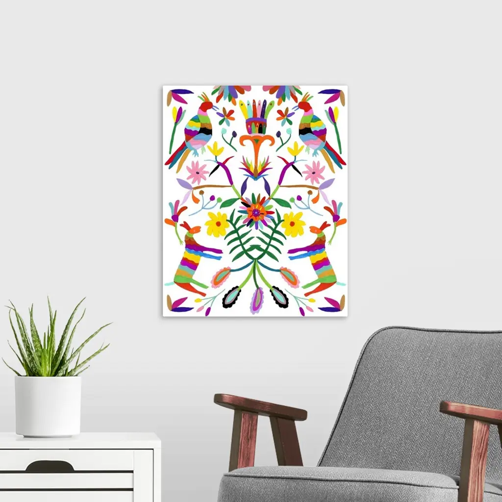 Inspired by the traditional pattern and designs of the Otomi people, this contemporary artwork reflects the energy and spirit of their culture.
