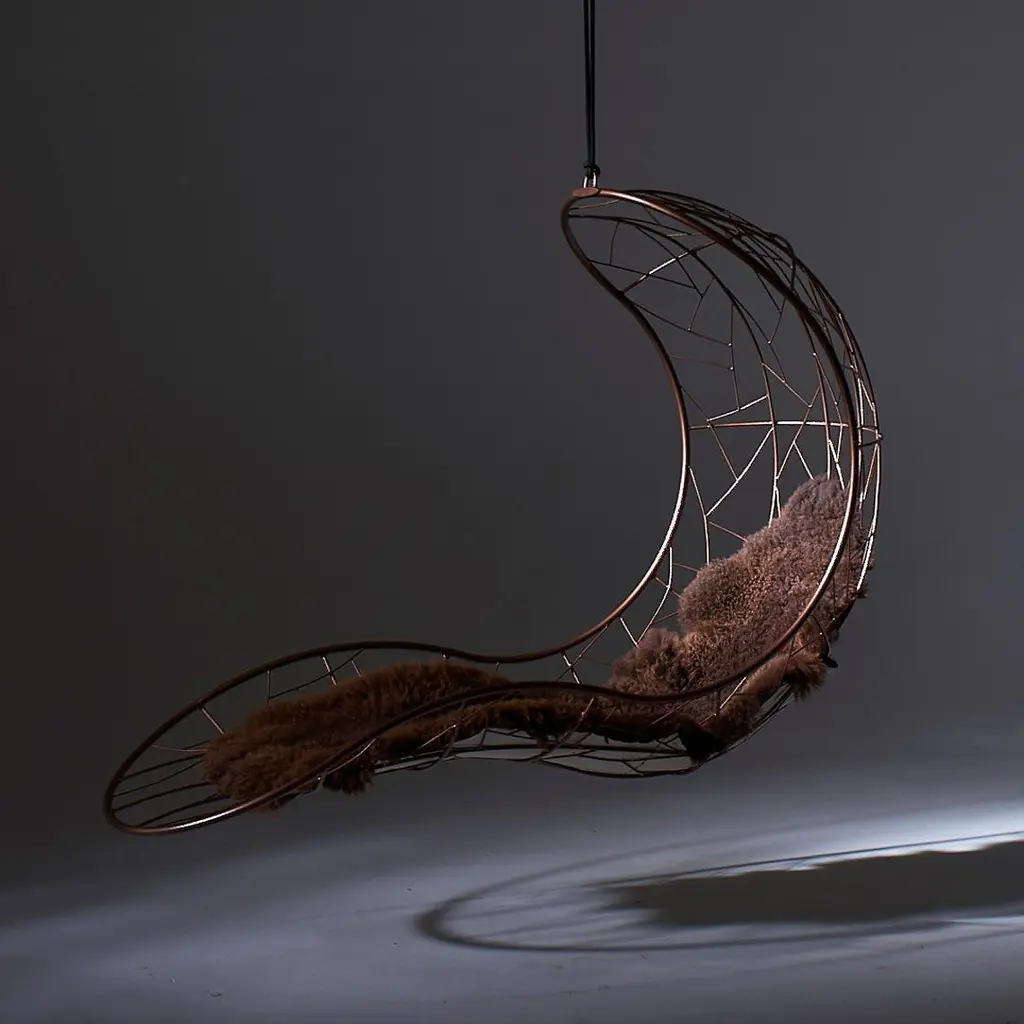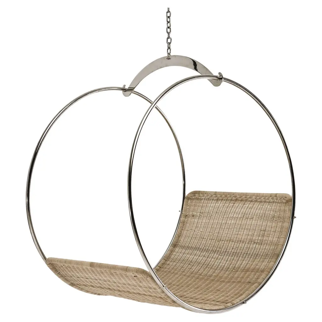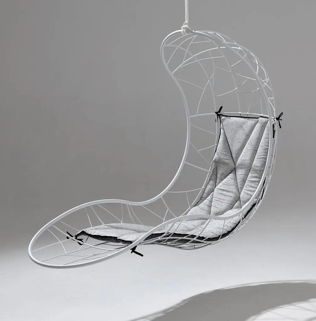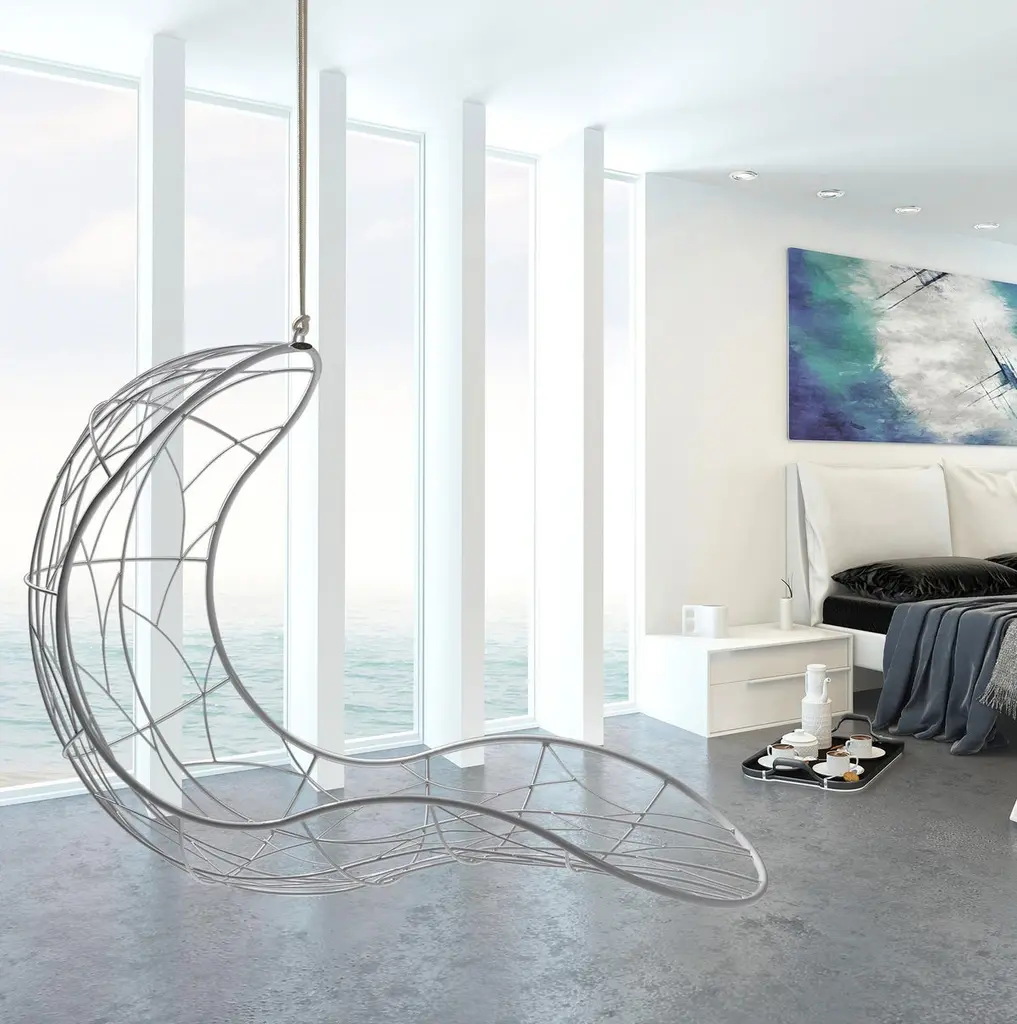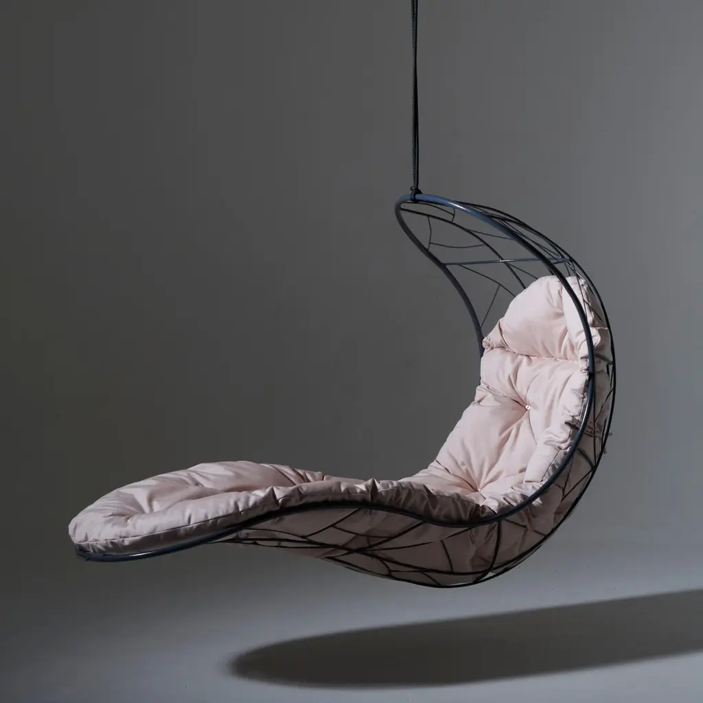 The Recliner hanging chair swing seat has elegantly curved lines & is sculptural and dynamic with a considered balance point.Fluid & organic, it lends itself for use as a functional art piece. Its gentle movement gives a relaxing, floating experience with panoramic views of its surroundings. The chair ensures an extremely comfortable lounging experience & has a cozy cocoon-like feel that embraces your body and soul.The Recliner is also available on a base stand / with legs for the more grounded person.Each one is made by hand. The core frame is standard to ensure consistency in shape and comfort. Due to the variance of craftsmanship going into each chair, every piece has individualism and uniqueness in some of the pattern detailing.Stainless Steel recommended for humid, salty, high moisture, coastal regions – on request and at an additional chargeHanging mechanisms are supplied in standard lengths, ready for installation. Very Durable Beautiful Modern Minimal Contemporary and unique Made By Hand Indoor & Outdoor Maximum Capacity 120 kgs / 265 lbs. Powder Coated Made from Rust Treated Mild Steel Made in South AfricaDimensions: L (arm to arm) x W (front to back) x H (top to bottom)72 cm x 184 cm x 124 cm Inches approx. 28.3" x 72.4'' x 48.8"Weight: 18kg / 40 lbs1 Year Warranty-Products to be free from defects in material and workmanship for a period of one (1) year from date of sale. Any product found to be defective within this time period may be returned to our factory, freight prepaid, with prior return authorization for repair or replacement.
