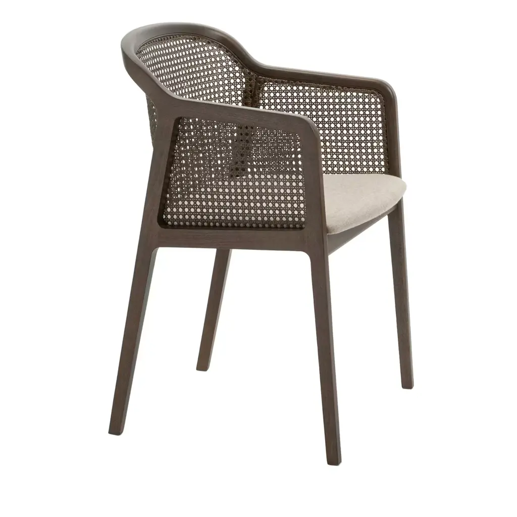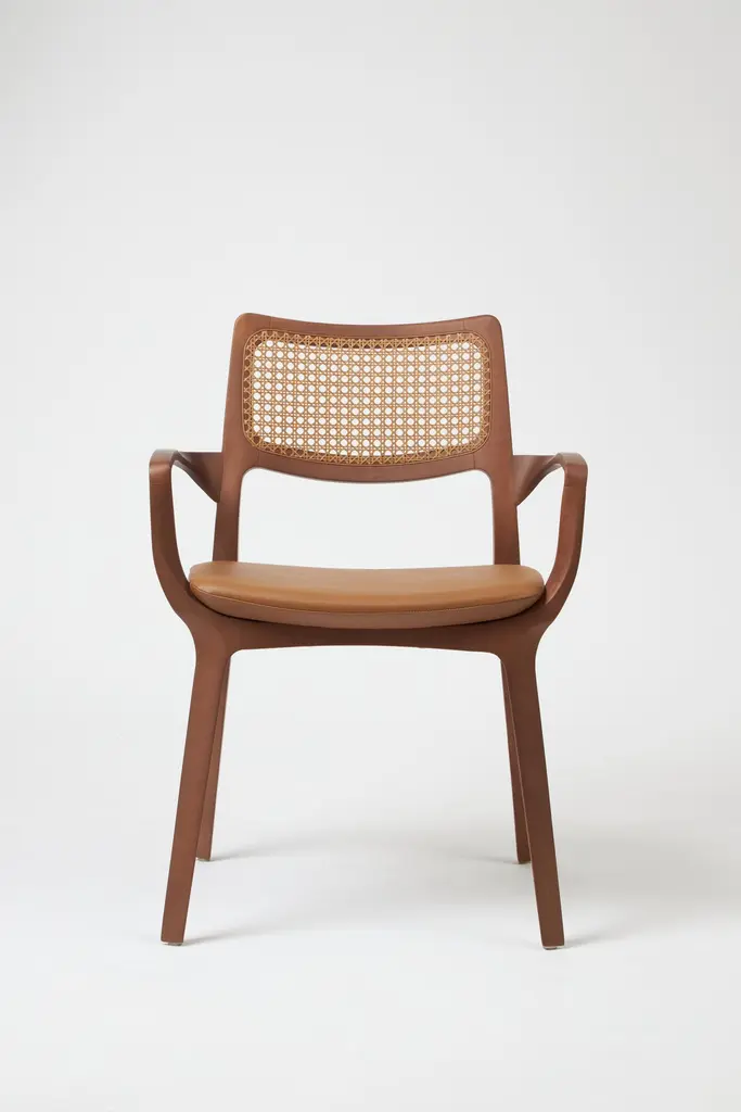 Modern Style Aurora Chair Sculpted In Walnut Finish Arms, Leather Seating, Cane
