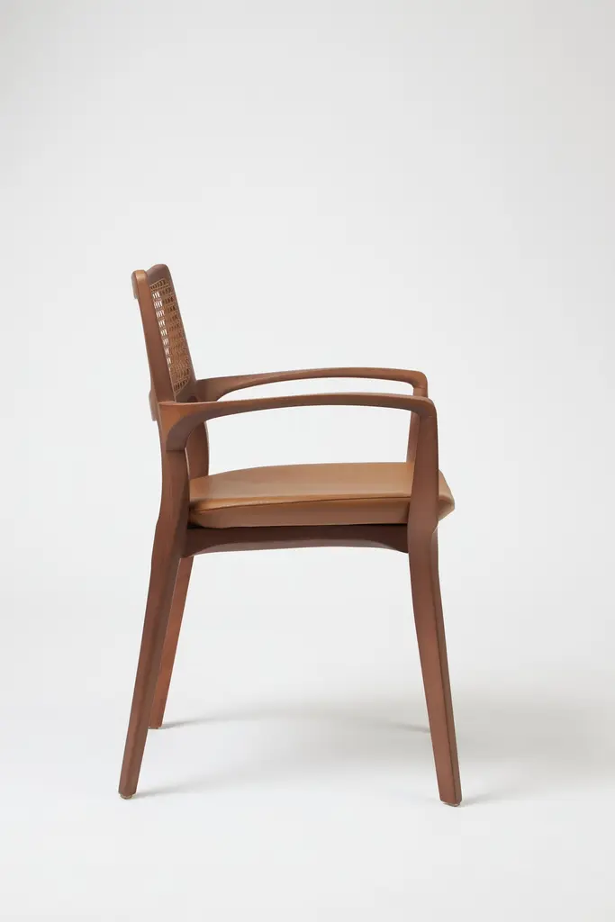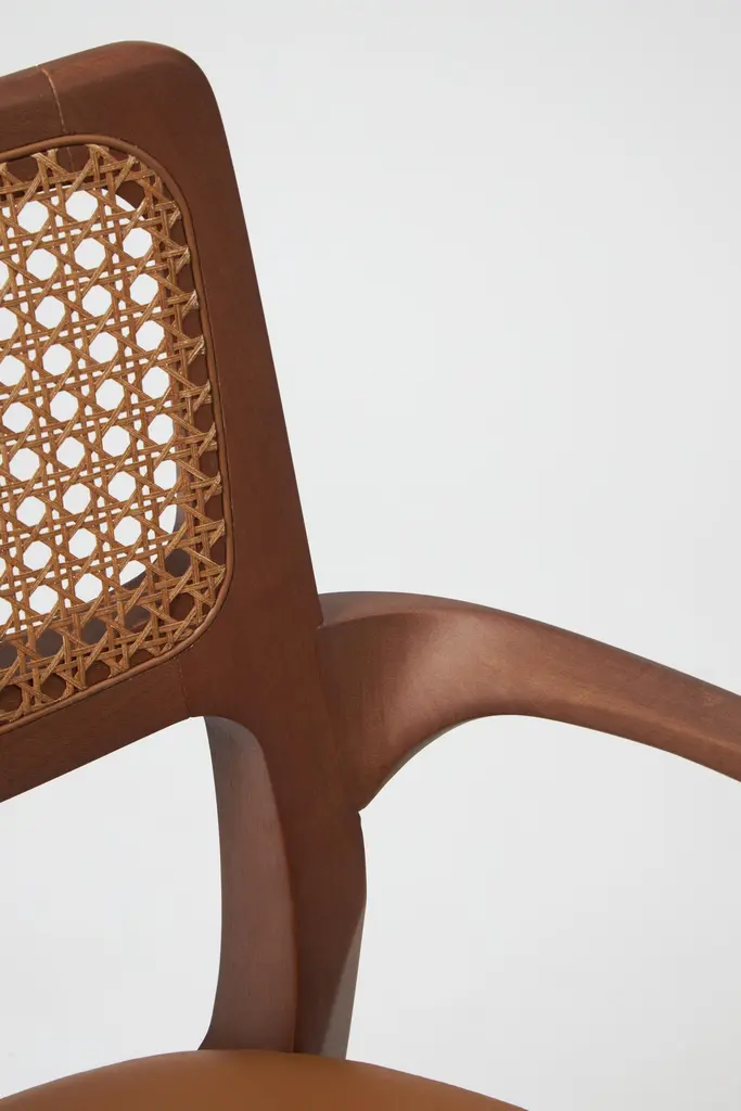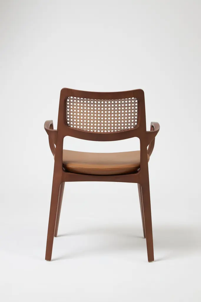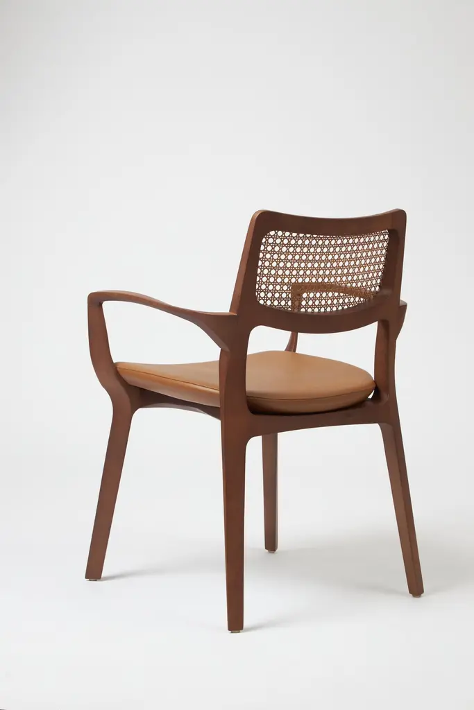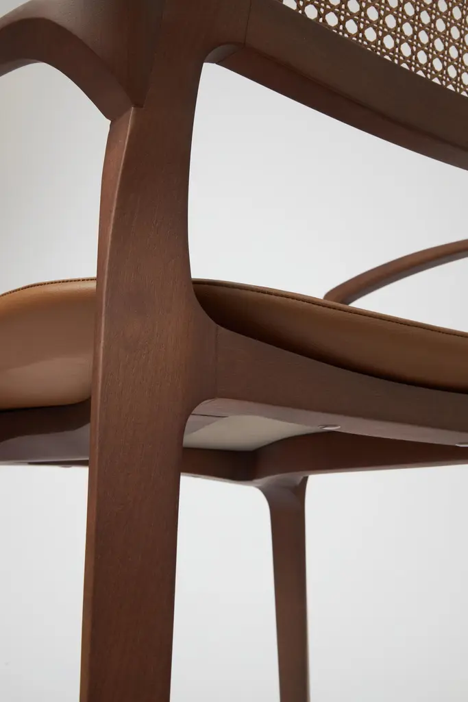 Modern Style Aurora Chair Sculpted In Walnut Finish Arms, Leather Seating, Cane