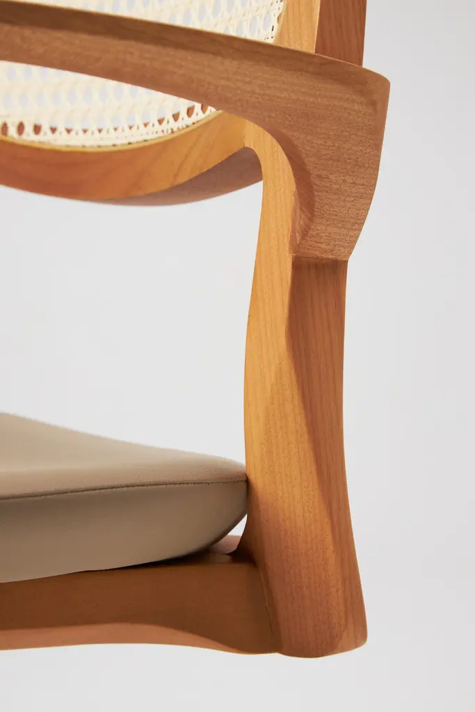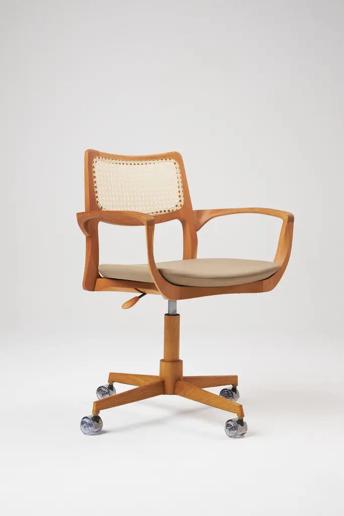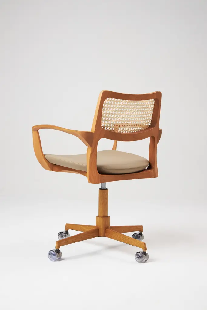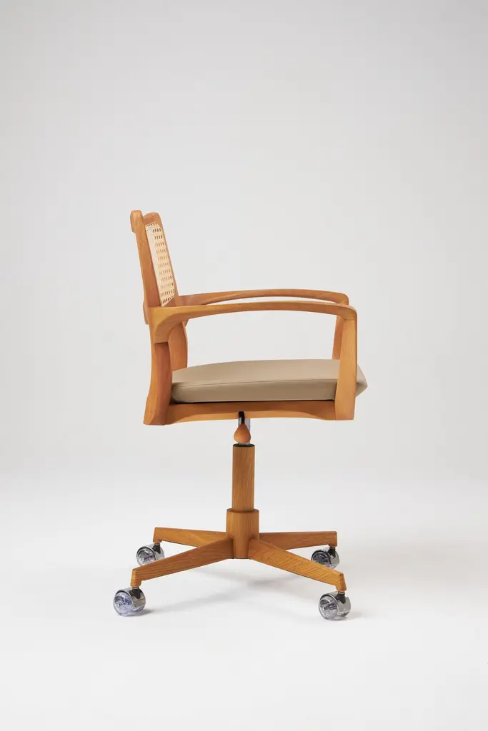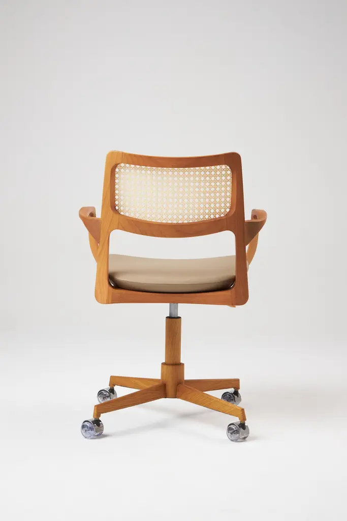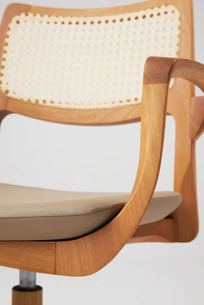 Modern Style Aurora Office Chair In Solid Wood, Caning Back, Leather Seat