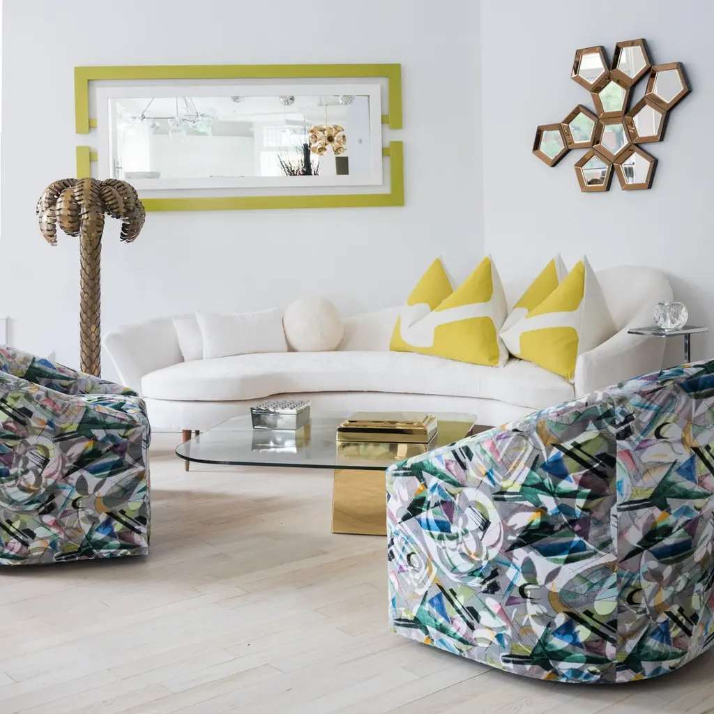 Modern Swivel Chair With Bauhaus Velvet Print, Customizable
