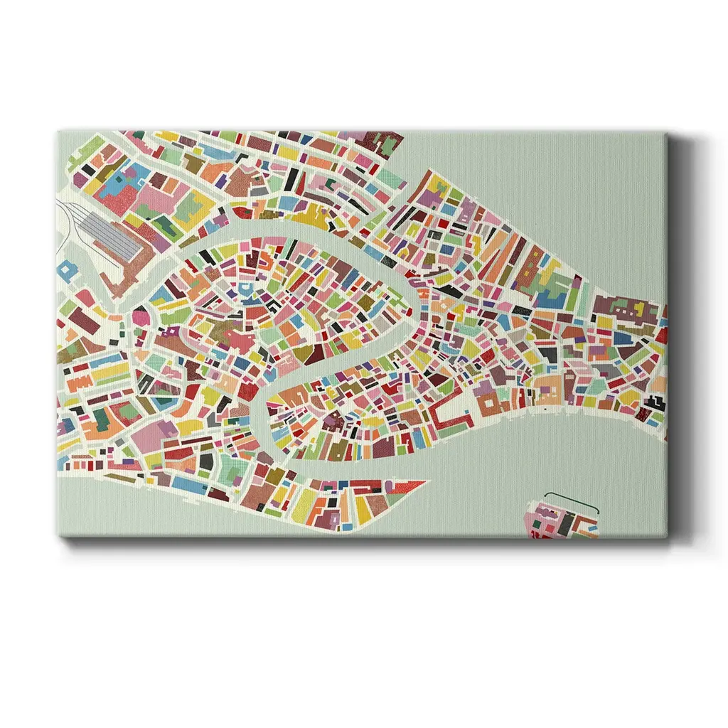 Modern Venice Map Premium Gallery Wrapped Canvas - Ready to Hang A premium hand stretched gallery wrapped canvas print created to last. Featuring a beveled a solid wood stretcher bar, each piece comes ready to hand 6 SIZES AVAILABLE 8''X12'' - Overall Size 12''X18'' - Overall Size 18''X27'' - Overall Size 24''x36'' - Overall Size 32''x48'' - Overall Size 40''x60'' - Overall Size Each piece is made to order. Built to Last Each piece comes ready to hang Solid wood stretcher Fade and Water resistant Made domestically