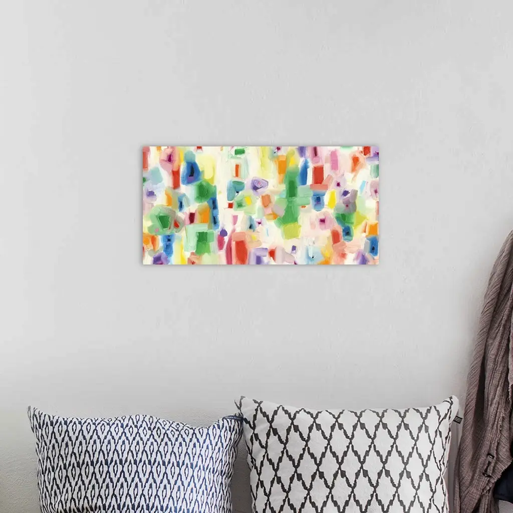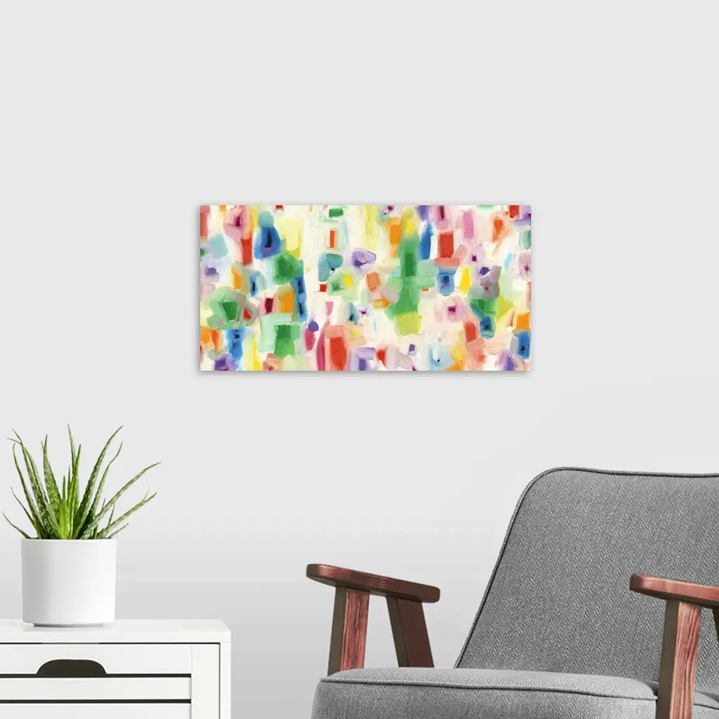 Contemporary abstract painting using vibrant colors and organic shapes.