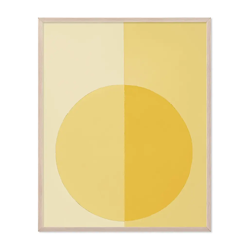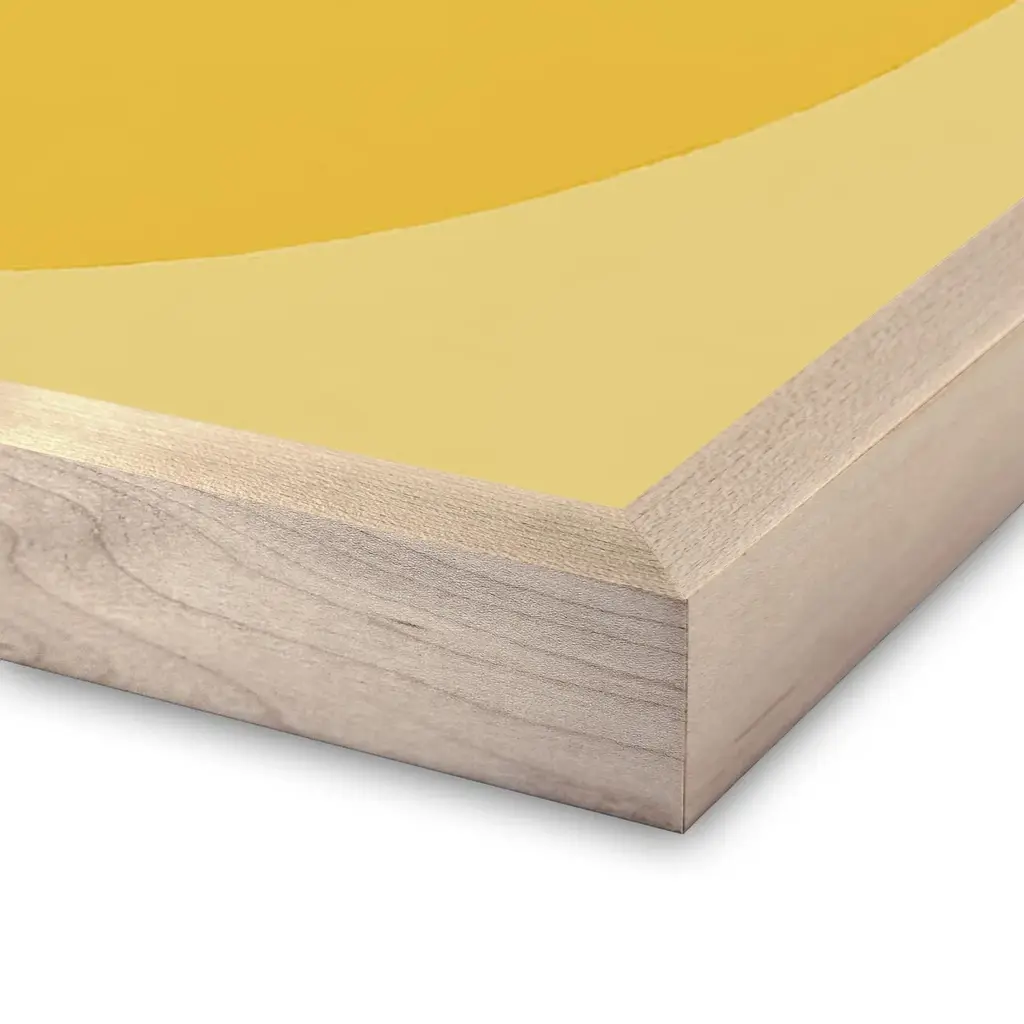 DESCRIPTION: Modern Yellow Forever by Stephanie Henderson in Natural Frame, Large Art Print SPECIFICATIONS: Type: Giclée Art Print on Matte Paper. Overall Size (in): 32x40. Image Size (in): 31x39. Orientation: Vertical. Flush/Float/Matted: Flush. Frame Color: White. Hanging Hardware: Picture Perfect. FRAMING: Each art work arrives framed and ready to hang. We use handmade frames with a plexiglass glazing front, because it offers less glare than standard glass. At this time, we only offer framed prints. ARTIST BIO: Stephanie Lear Henderson is a painter living in Ponte Vedra Beach, Florida. Her work can be found in collections throughout the US and Canada. Working primarily in hard-edge abstraction, she also occasionally paints representational works in oil. A native of Thomasville, Georgia, Stephanie earned a B.A. in English Literature from the University of Virginia and an M.A. in Journalism from the University of Georgia. Stephanie’s work revolves around bold, saturated color and how colors communicate with each other and affect the observer. Her paintings contain forms that are simple, allowing the colors to express themselves without complications. Stephanie’s work reveals focus, precision, and an insatiable appetite for evocative combinations of color. She revels in the challenge of painting perfectly clean lines freehand with a brush. No tape. No masking.Stephanie embraces the belief that color alters mood, outlook, and brings absolute joy to life. Stephanie's artwork has appeared in a multitued of publications including House Beautiful and The CUT.