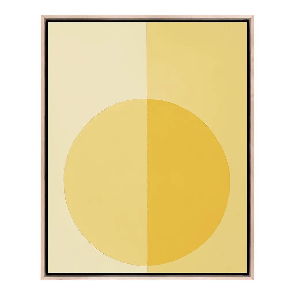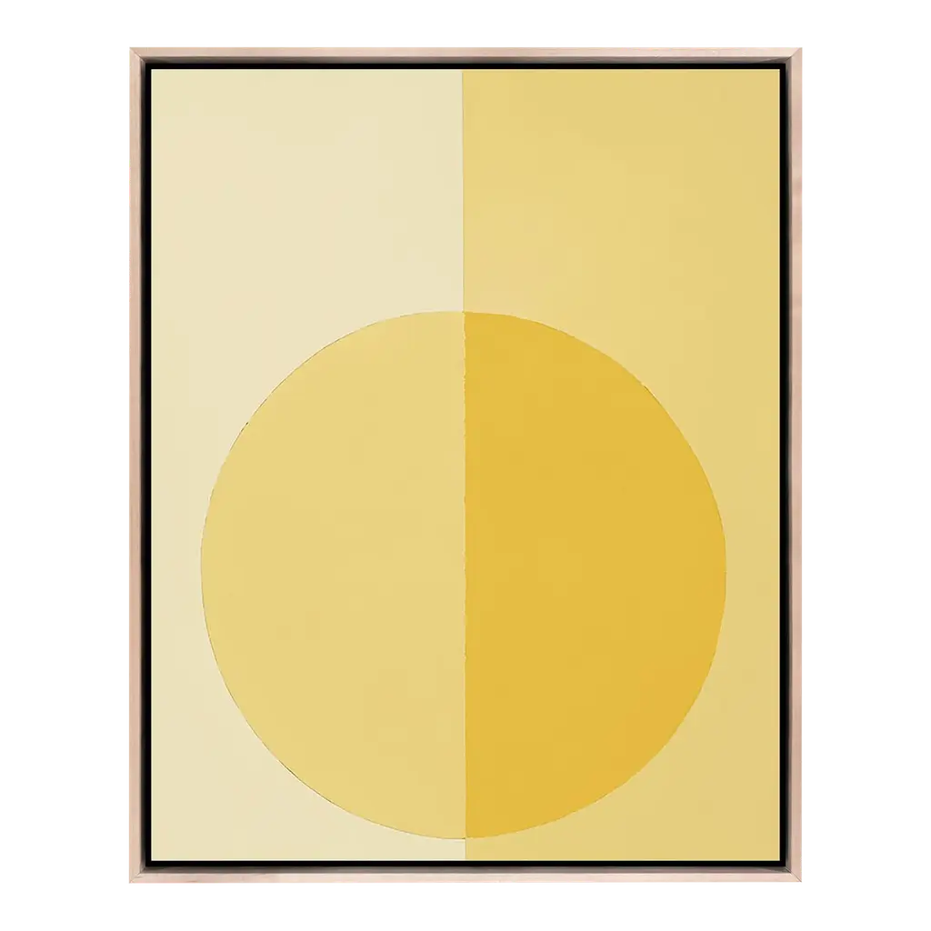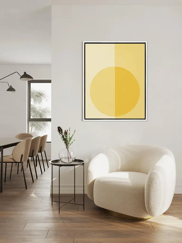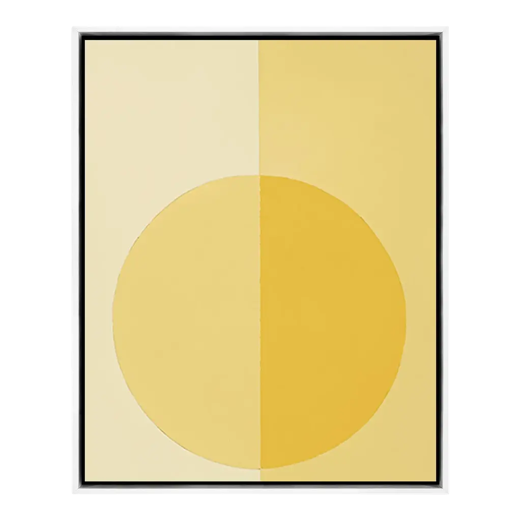 DESCRIPTION: Modern Yellow Forever by Stephanie Henderson in White Frame, Medium Art Print on Canvas SPECIFICATIONS: Type: Giclée Art Print on Matte Canvas. Overall Size (in): 29x36. Image Size (in): 27.5x34.5. Orientation: Vertical. Flush/Float/Matted: Float. Frame Color: White. Hanging Hardware: Picture Perfect. FRAMING: Each art work arrives framed and ready to hang. We use handmade frames with a plexiglass glazing front, because it offers less glare than standard glass. At this time, we only offer framed prints. ARTIST BIO: Stephanie Lear Henderson is a painter living in Ponte Vedra Beach, Florida. Her work can be found in collections throughout the US and Canada. Working primarily in hard-edge abstraction, she also occasionally paints representational works in oil. A native of Thomasville, Georgia, Stephanie earned a B.A. in English Literature from the University of Virginia and an M.A. in Journalism from the University of Georgia. Stephanie’s work revolves around bold, saturated color and how colors communicate with each other and affect the observer. Her paintings contain forms that are simple, allowing the colors to express themselves without complications. Stephanie’s work reveals focus, precision, and an insatiable appetite for evocative combinations of color. She revels in the challenge of painting perfectly clean lines freehand with a brush. No tape. No masking.Stephanie embraces the belief that color alters mood, outlook, and brings absolute joy to life. Stephanie's artwork has appeared in a multitued of publications including House Beautiful and The CUT.