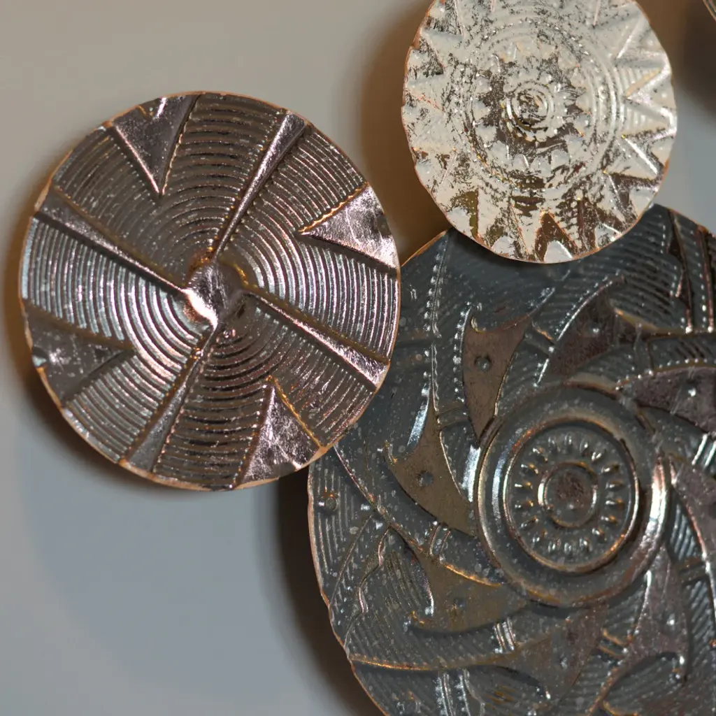 Modernist Floating Roundels, Atelier Metal Wall Decor, Gray White Washed Patina