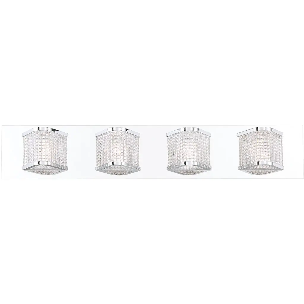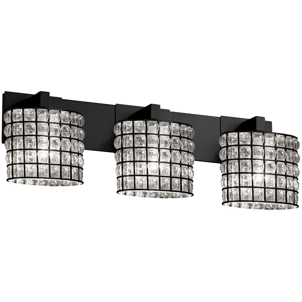 Modular 3 Light 27 Inch Brushed Nickel Vanity Light Wall Light In Grid With Clear Bubbles, Square With Flat Rim, Incandescent