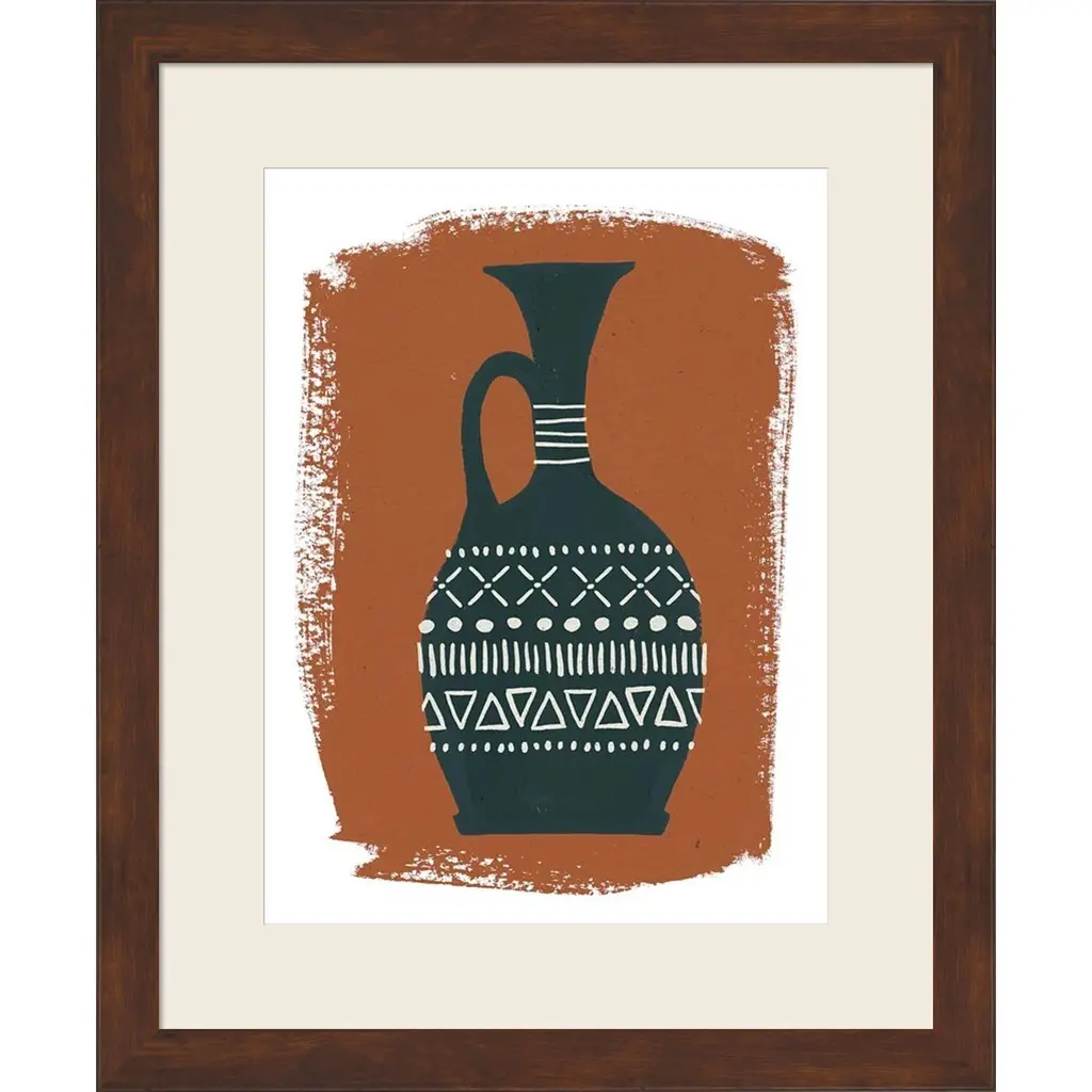 Global Vessels I by Moira Hershey is a high quality piece of framed artwork. The finished size of this piece is 18.75" X 22.75". It has a Slim Solid Pecan Brown Flat with Satin Finish frame, is single matted and finished with high quality Acrylic Plexiglass. 100% Satisfaction Guaranteed.