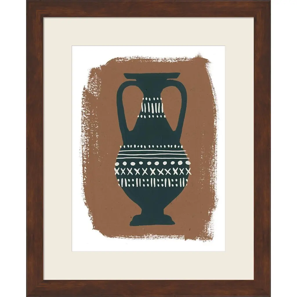 Global Vessels III by Moira Hershey is a high quality piece of framed artwork. The finished size of this piece is 18.75" X 22.75". It has a Slim Solid Pecan Brown Flat with Satin Finish frame, is single matted and finished with high quality Acrylic Plexiglass. 100% Satisfaction Guaranteed.