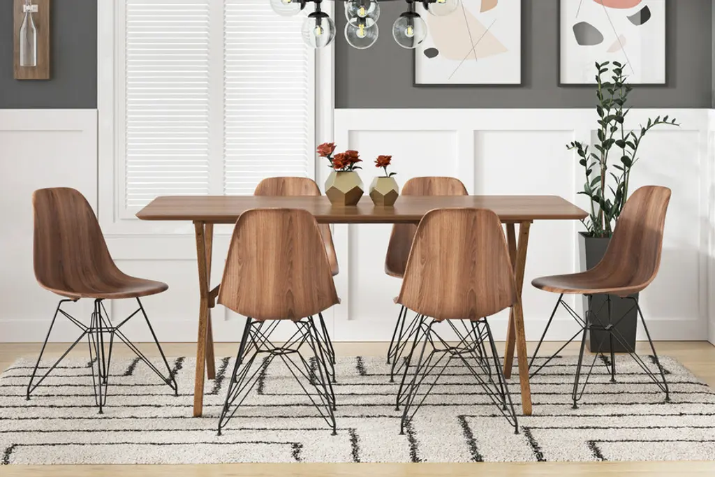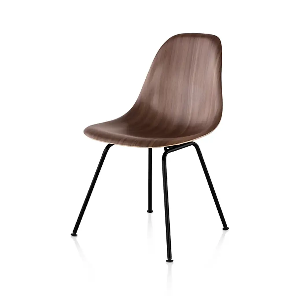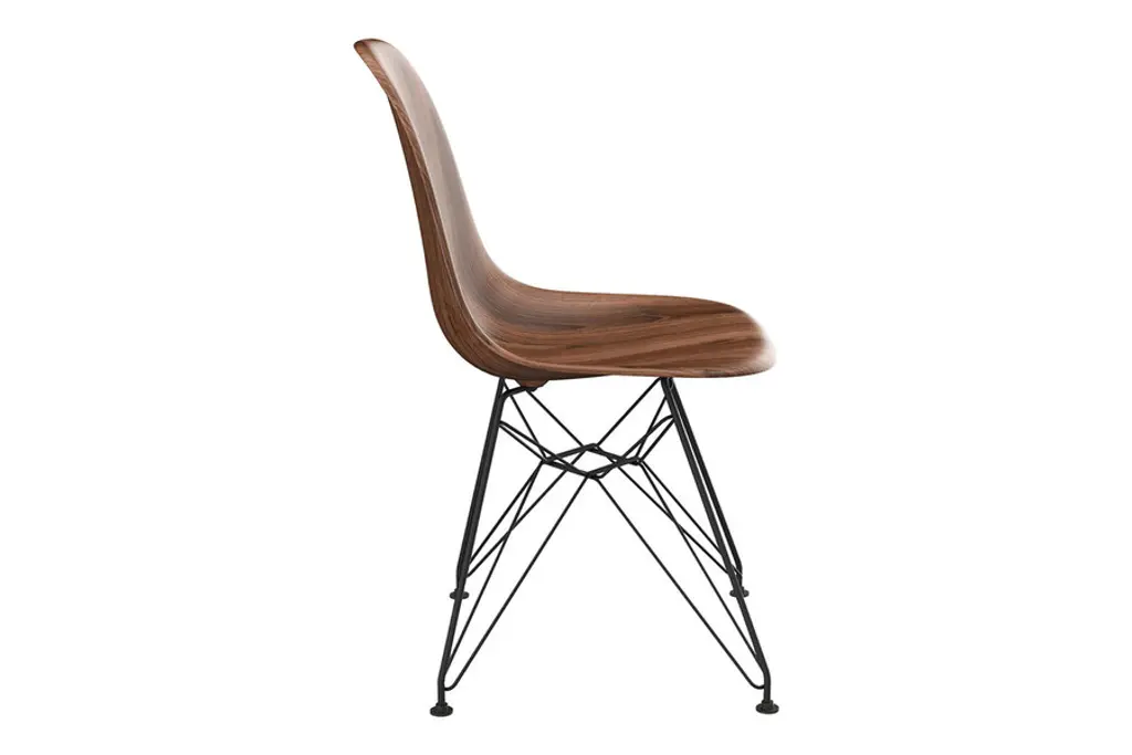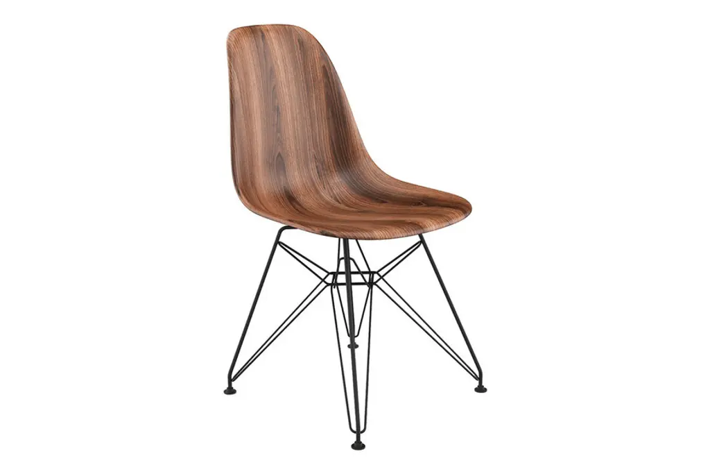A New Take on a Tried & True Classic The Molded Plastic Side Chair concept was conceived in the mid-1950's, has received numerous design awards, and has increased in popularity and relevancy ever since. It has served as a functional, versatile choice in homes and establishments throughout the entire world, due to its uncanny blend of form-fitting structure and eye-catching design. Its visual simplicity lends itself so well to experimentation, and for decades, the Molded Plastic Side Chair design has gone through many iterations, with variations in construction materials, color combinations and leg styles. Celebrating the creative intent of the Molded Plastic Side Chair, Inmod's exclusive Printed version offers this classic design in a brand-new finish that beautifully replicates the look of a finely detailed walnut wood grain, offering a new layer of appeal that is as sleek and relevant as it is classic and mid-century.18.5"w x 18"d x 32"h