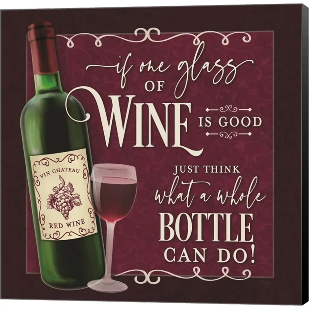 Whole Bottle by Mollie B. is a high quality piece of canvas artwork. The finished size of this piece is 12" X 12", and it has a depth 1.5" with black painted sides. There is a UV protective coating over the entire image, and it is ready to hang on your wall with no hardware required. 100% Satisfaction Guaranteed.