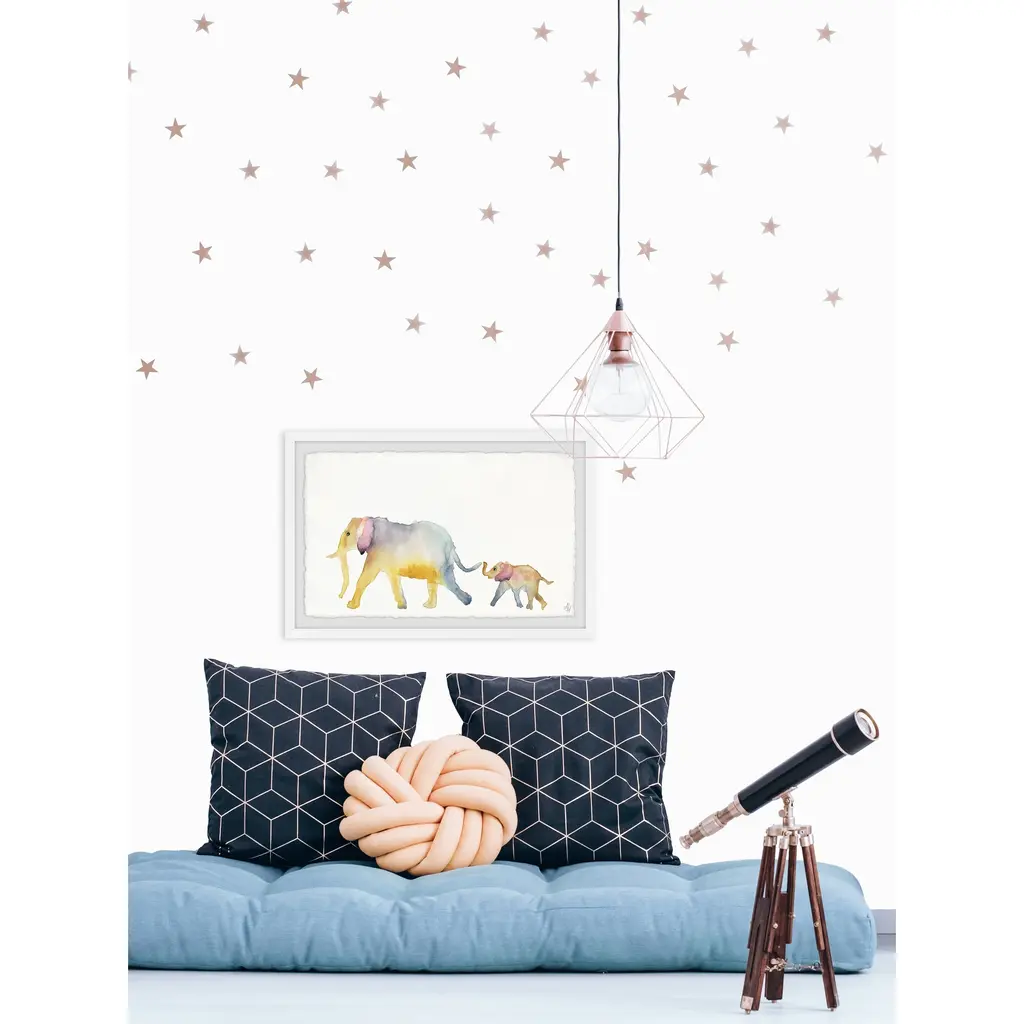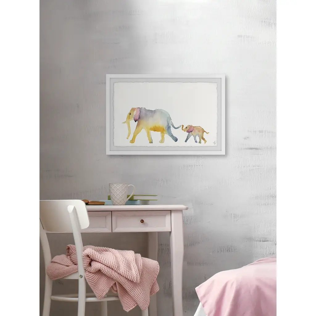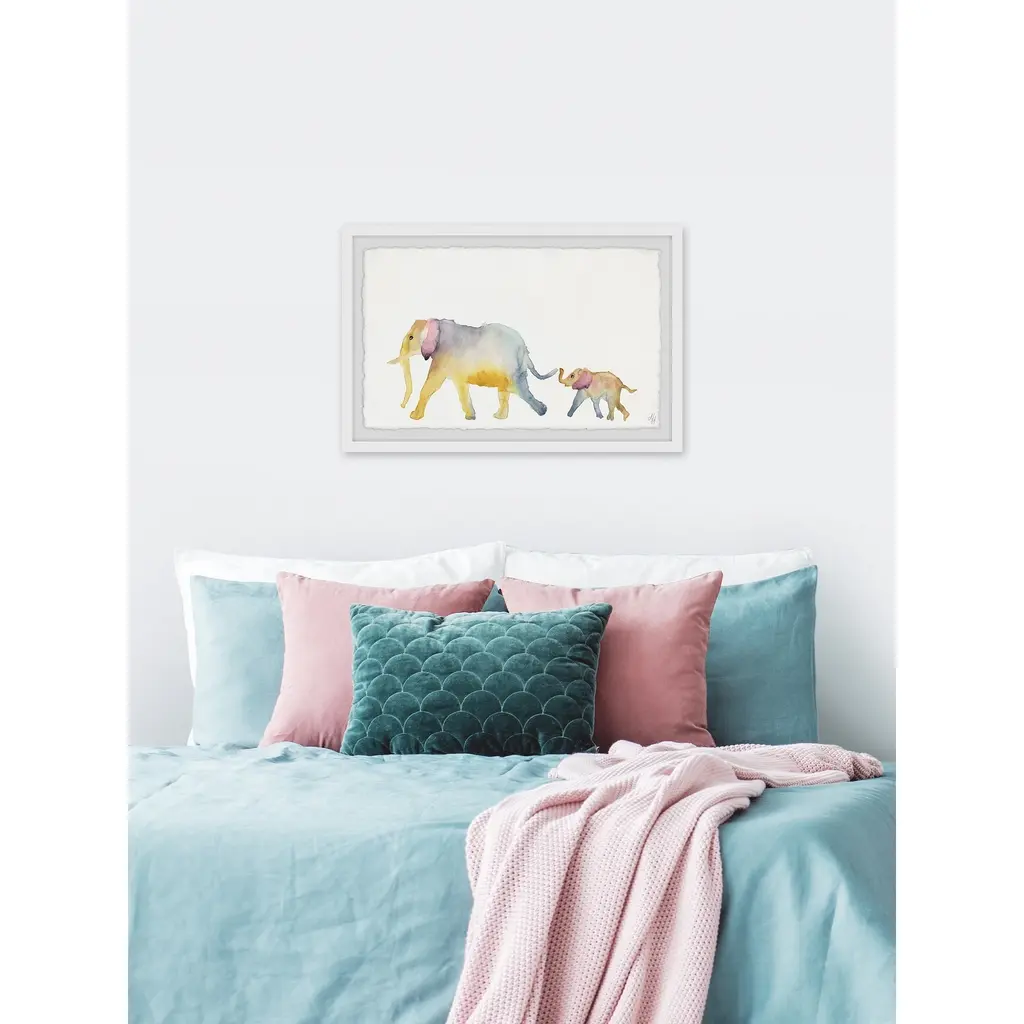 'Mom And Baby Elephant' Framed Painting Print - Multi-Color - 45 X 30