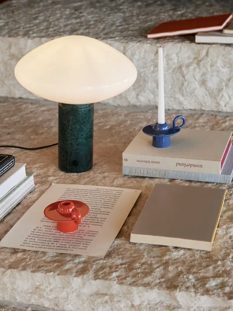 The Momento Candleholder pays homage to the classic candleholder form, historically designed to be carried from room to room. Slip-cast and glazed with precision by artisans in Portugal, the JH39 Candleholder comes in four colours inspired by Hayon’s artwork. While Azure and Poppy Red bring vibrant, statement hues, Ivory and Red Brown introduce rich, sophisticated tones to interiors.Production ProcessSlip casted glazed ceramicsEnvironmentIndoorMaterialCeramicColoursPoppy RedRed BrownIvoryAzure