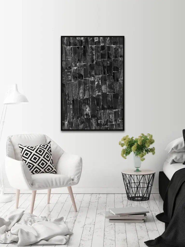 Instantly elevate your living space with this tasteful acrylic painting print that features a black and white abstract design made up of rectangle shapes. Proudly printed in the USA, this piece is printed on canvas before it''s stretched, and framed and mounted in a non-warping floater frame thereafter. With wall-mounting hooks included, this artful accent is ready to hang up as soon as it reaches your front door.Canadian artist, Parvez Taj uses water paints, photographs, software, and UV cured inks to create his wall art. His artwork connects the out-of-reach luxury art world with the modern, fashion-conscious home decorator by delivering high quality artwork that is both affordable and hip.Durable art print on high quality canvas by Parvez TajProfessionally hand stretchedFramed and mounted in non-warping floater frameArrives ready to hangIncludes a certificate of authenticityArtist signature on the front