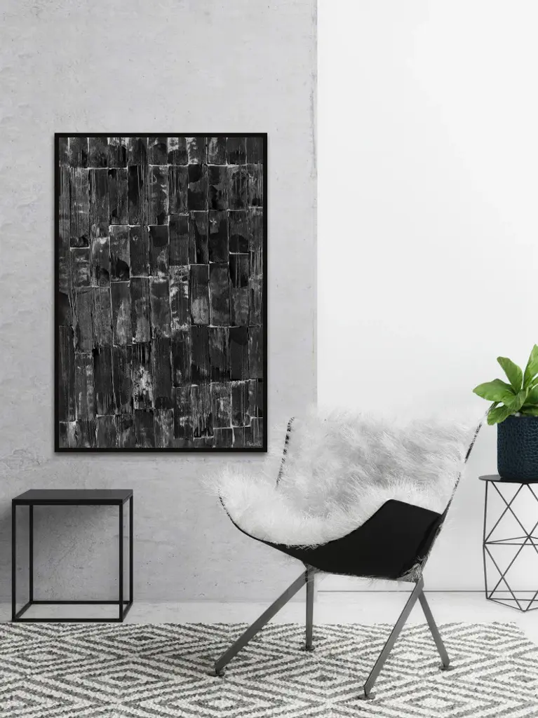 Instantly elevate your living space with this tasteful acrylic painting print that features a black and white abstract design made up of rectangle shapes. Proudly printed in the USA, this piece is printed on canvas before it''s stretched, and framed and mounted in a non-warping floater frame thereafter. With wall-mounting hooks included, this artful accent is ready to hang up as soon as it reaches your front door.Canadian artist, Parvez Taj uses water paints, photographs, software, and UV cured inks to create his wall art. His artwork connects the out-of-reach luxury art world with the modern, fashion-conscious home decorator by delivering high quality artwork that is both affordable and hip.Durable art print on high quality canvas by Parvez TajProfessionally hand stretchedFramed and mounted in non-warping floater frameArrives ready to hangIncludes a certificate of authenticityArtist signature on the front
