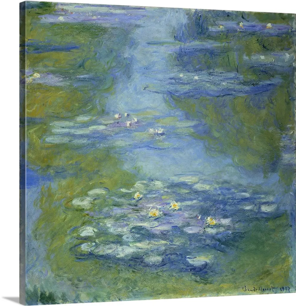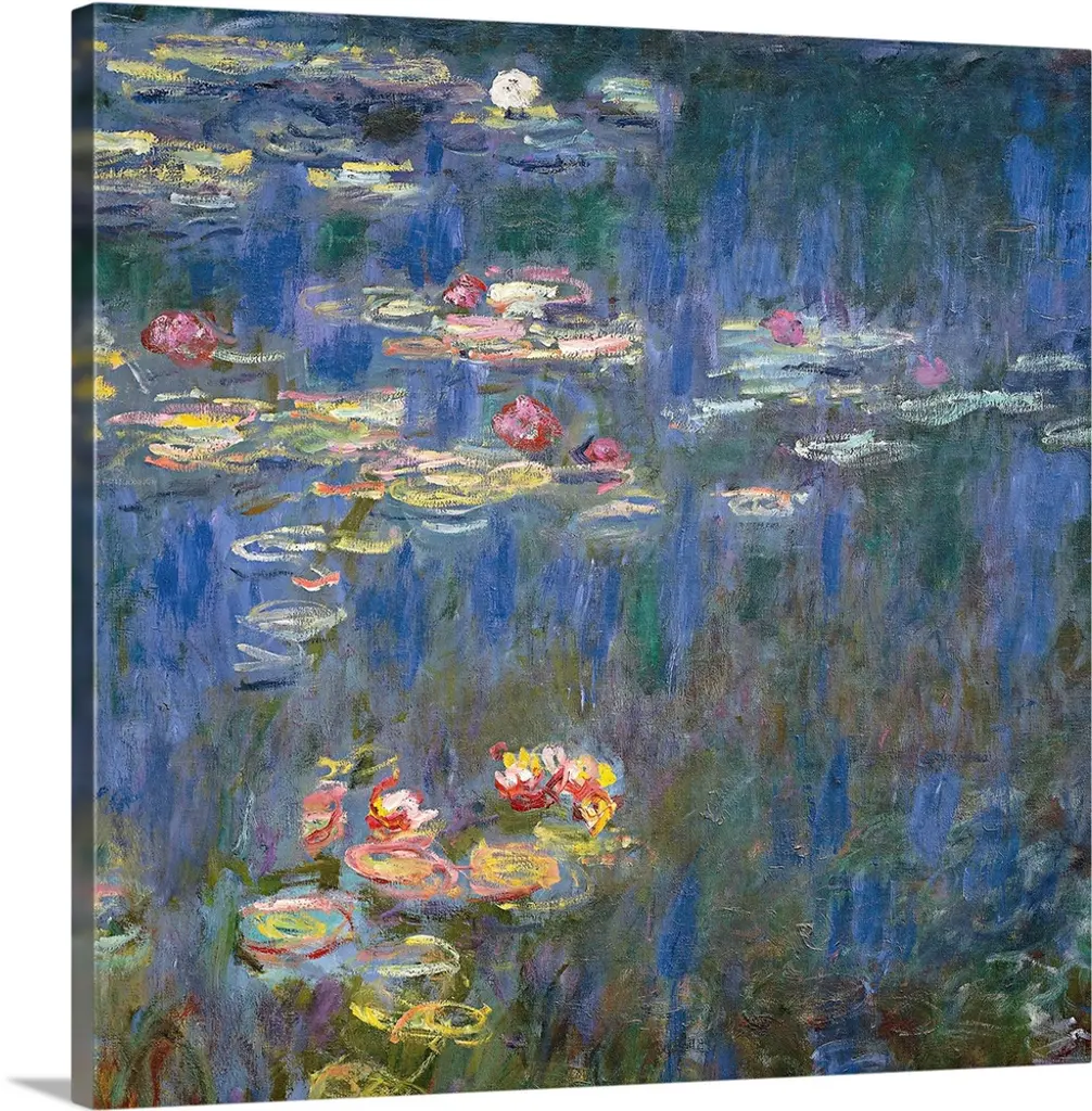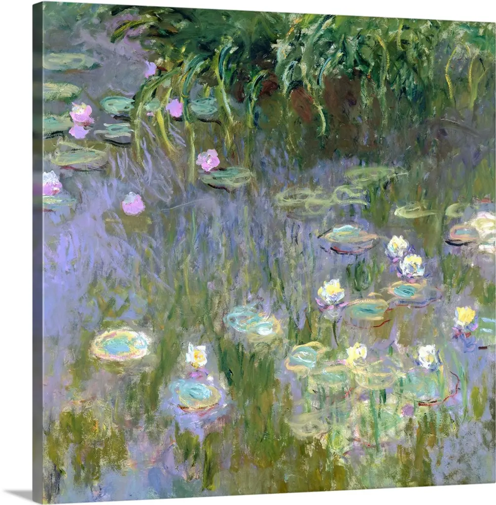 Artist: MonetSubject: LandscapeStyle: Mid-Century ModernProduct Type: Gallery-Wrapped Canvas ArtMade in USAThis ready to hang, gallery-wrapped art piece features water lilies at the bottom of the frame.Claude Monet was a founder of French impressionist painting, and the most consistent and prolific practitioner of the movement's philosophy of expressing one's perceptions before nature, especially as applied to plein-air landscape painting. Monet himself was enchanted by the vitality of outdoor settings as shown in many of his works.Giclee (jee-clay) is an advanced printmaking process for creating high quality fine art reproductions. The attainable excellence that Giclee printmaking affords makes the reproduction virtually indistinguishable from the original piece. The result is wide acceptance of Giclee by galleries, museums, and private collectors. Gallery wrap is a method of stretching an artist's canvas so that the canvas wraps around the sides and is secured a hidden, wooden frame. This method of stretching and preparing a canvas allows for a frameless presentation of the finished painting.