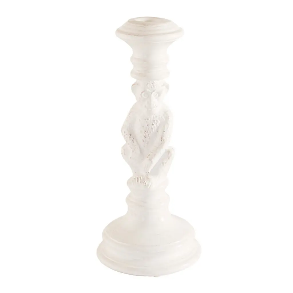 This delightful Monkey Candlestick was handmade exclusively for us in the picturesque Northern Italian town of Bassano del Grappa, where fine ceramics have been produced since the 17th century. Using a special white clay called terraglia dolce ("sweet earthenware") found in the nearby Dolomite mountains, skilled family artisans meticulously shape each candlestick by hand to create its expressive details and unique personality. Baked at 1000 degrees Celsius, the ceramic candle holder comes out of the kiln resembling snow white porcelain, perfect for hand painting and carving decoration. Each Monkey Candlestick is stamped underneath with "Hand Made in Italy" and signed by the artist. Monkey Candlestick features: