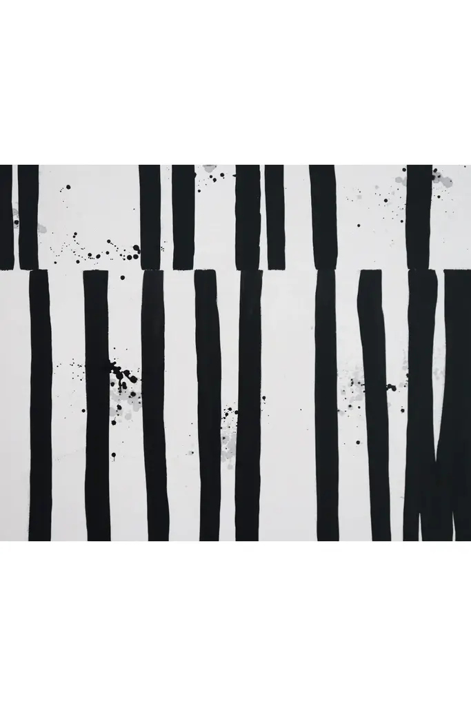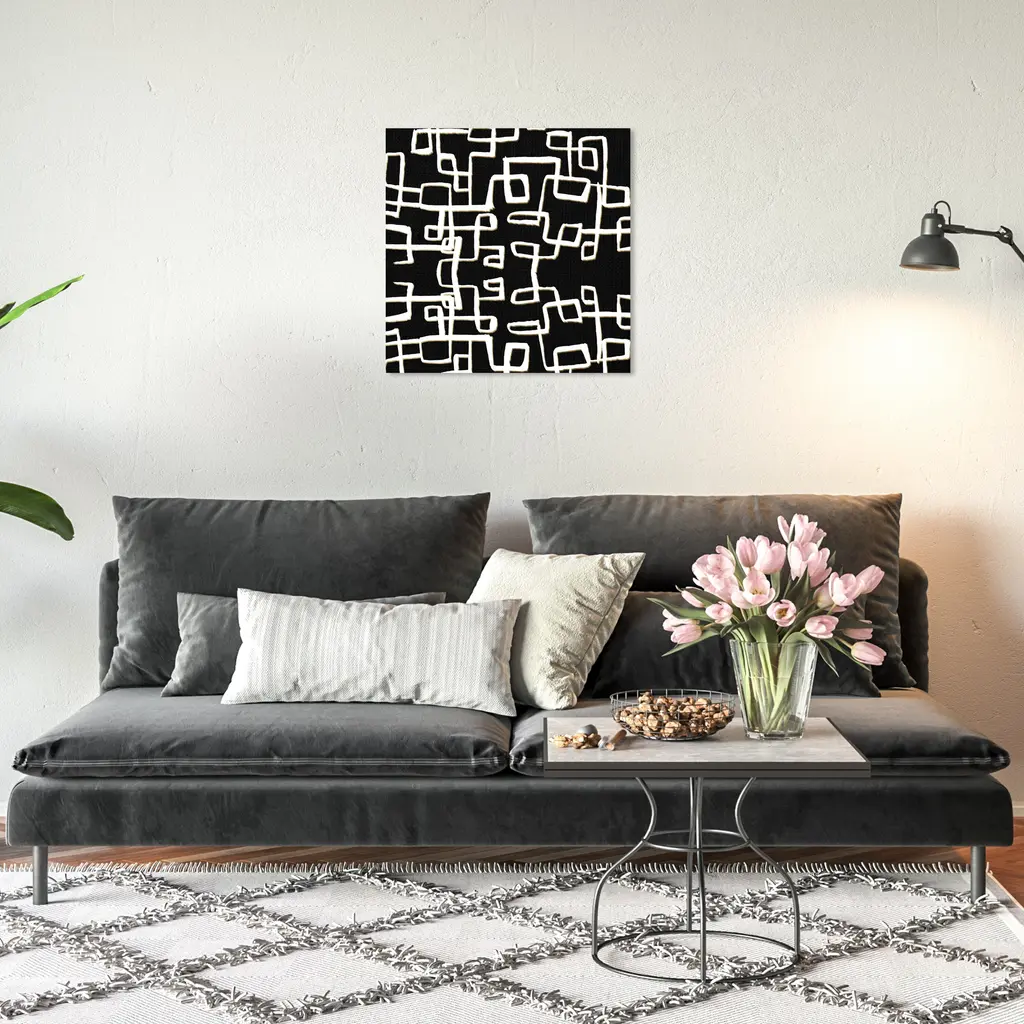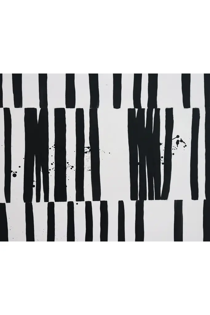 With a mostly black and white composition, this two-tone oil painting makes an impression. Its confident black strokes of thick paint give it a pragmatic visual effect. The contrast of white on black emphasizes the handpainted lineation. Eidos will add a touch of drama and bring a monochromatic interior style together, with a black wooden frame included.