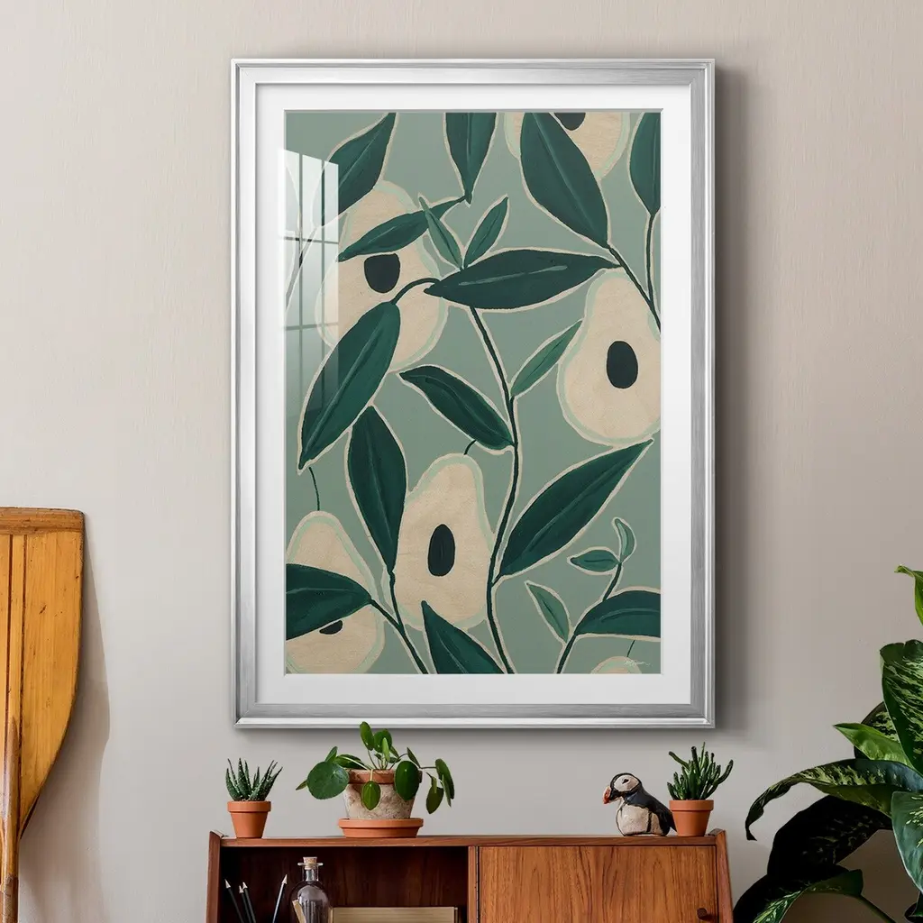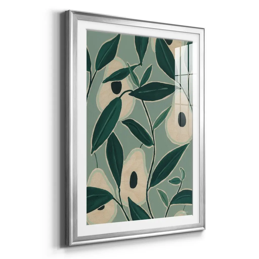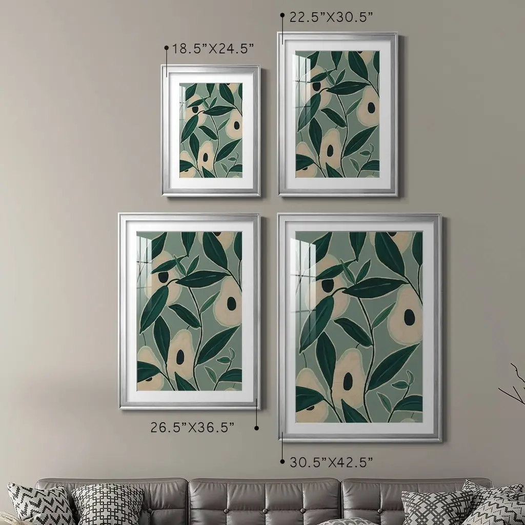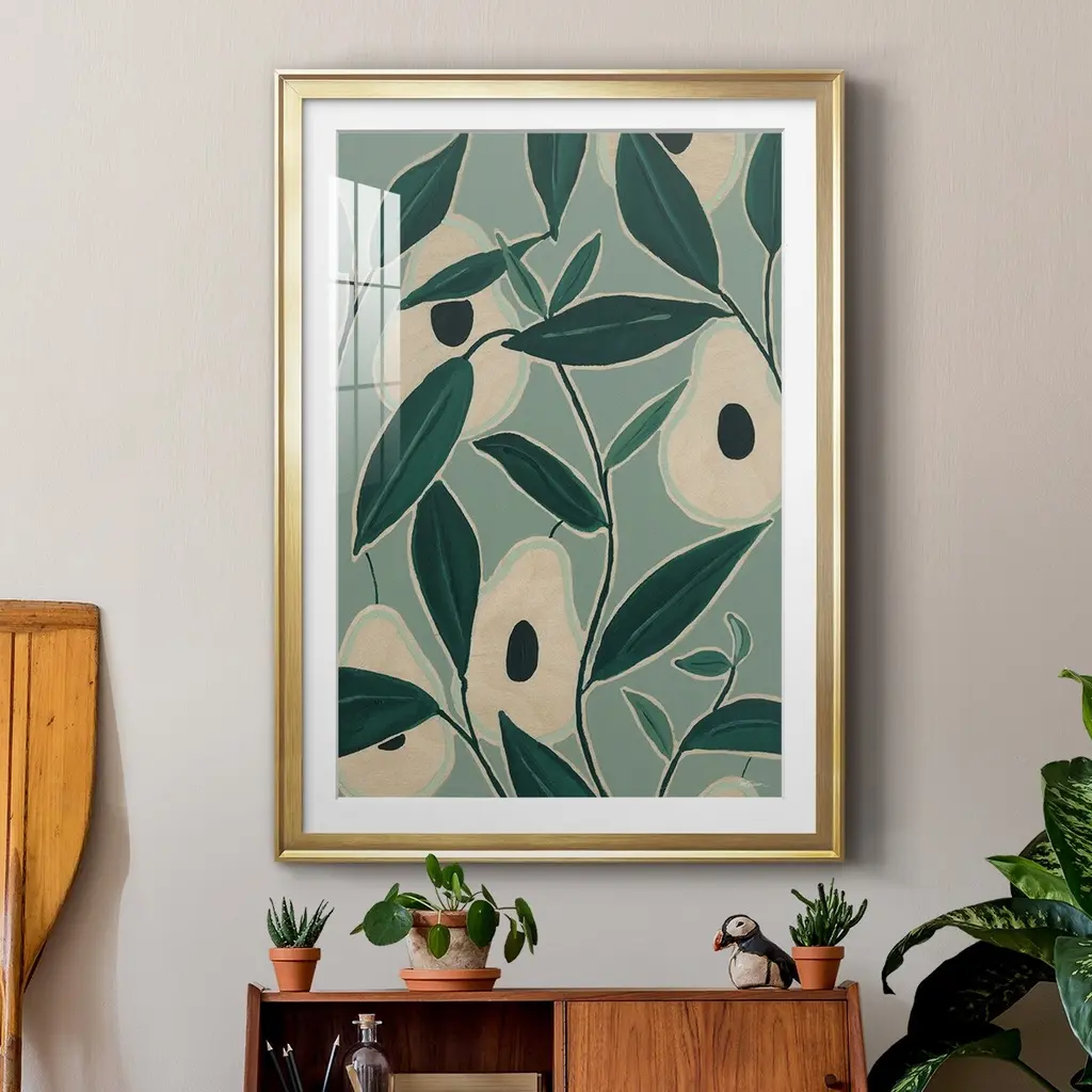 Monochrome Avocados Premium Framed Print - Ready to Hang A Premium Framed Print created to last. Framed in distressed wood and available in an array of sizes and colors Featuring a beveled a solid wood stretcher bar, each piece comes ready to hand 4 SIZES AVAILABLE 30.5''X42.5'' - Overall Size 26.5'X36.5'' - Overall Size 22.5''x30.5'' - Overall Size 18.5''x24.5'' - Overall Size Each piece is made to order. Each piece comes with hanging hardware. Made in the USA Ready to Hang Giclee Paper Print Acrylic Glass Beveled Matt Board