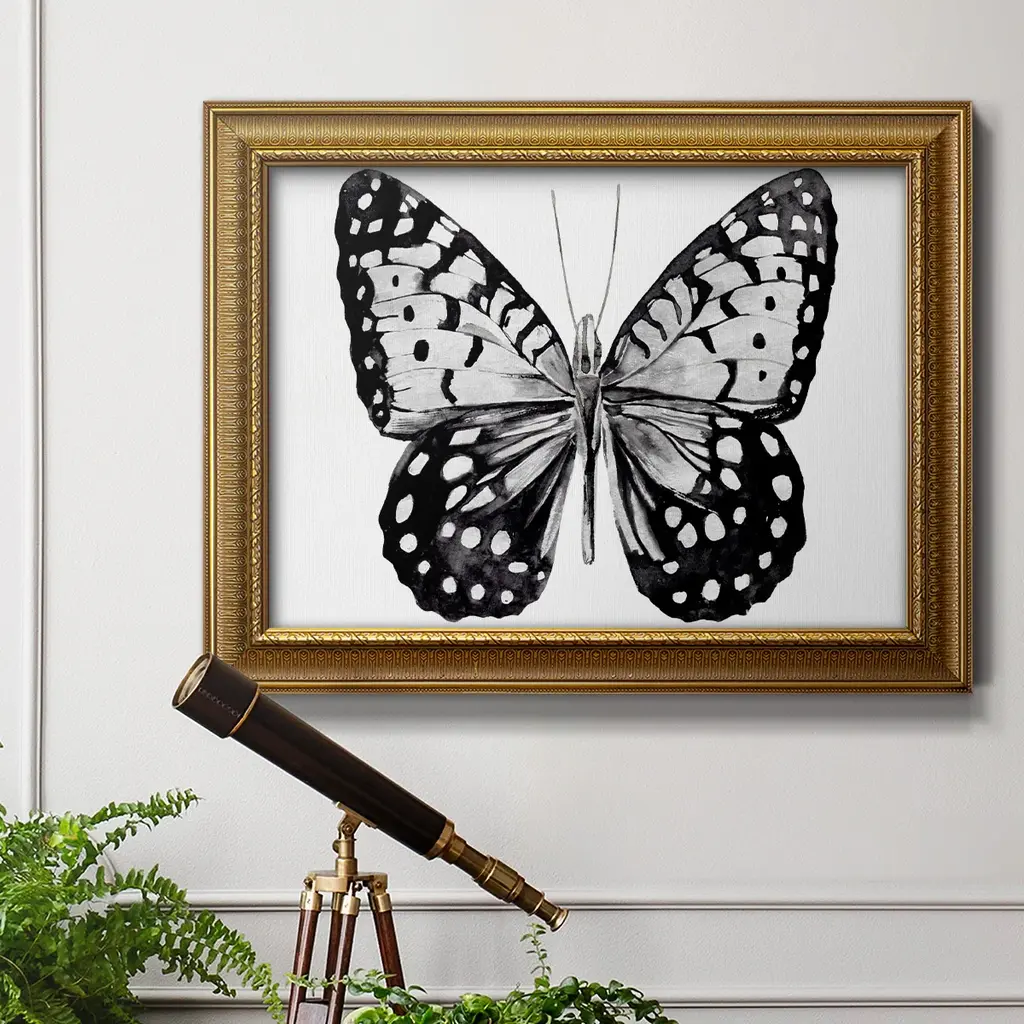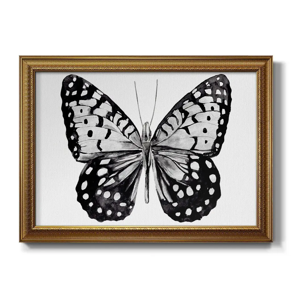 Monochrome Wings Whole I Premium Framed Canvas- Ready to Hang A Premium Framed Canvas created to last. Framed in distressed wood and available in an array of sizes and colors Featuring a beveled a solid wood stretcher bar, each piece comes ready to hand 3 SIZES AVAILABLE 16''X20'' - Overall Size 18'X27'' - Overall Size 24''x36'' - Overall Size Each piece is made to order. Each piece comes with hanging hardware. Made in the USA Ready to Hang Giclee Paper Print Acrylic Glass Beveled Matt Board