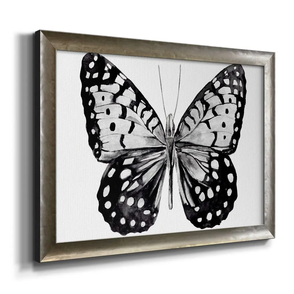 Monochrome Wings Whole I Premium Framed Canvas- Ready to Hang A Premium Framed Canvas created to last. Framed in distressed wood and available in an array of sizes and colors Featuring a beveled a solid wood stretcher bar, each piece comes ready to hand 3 SIZES AVAILABLE 16''X20'' - Overall Size 18'X27'' - Overall Size 24''x36'' - Overall Size Each piece is made to order. Each piece comes with hanging hardware. Made in the USA Ready to Hang Giclee Paper Print Acrylic Glass Beveled Matt Board