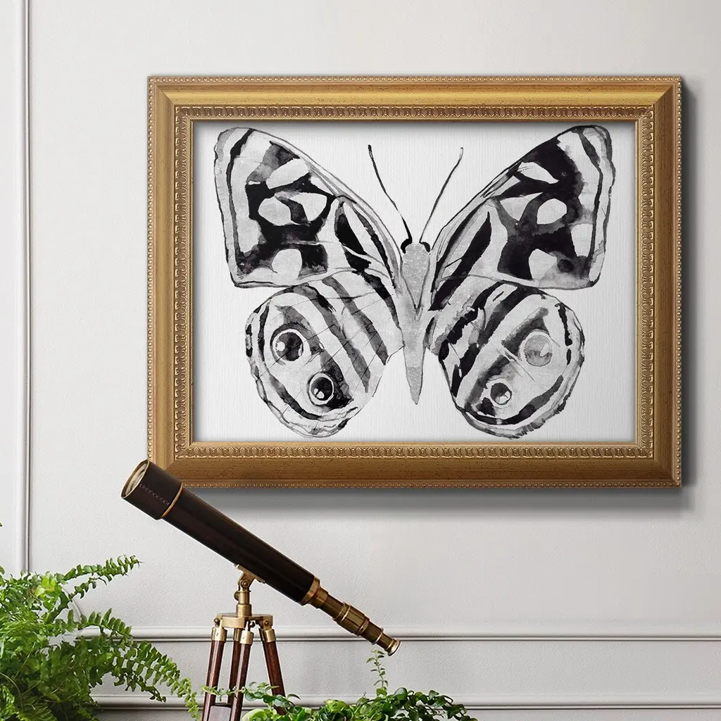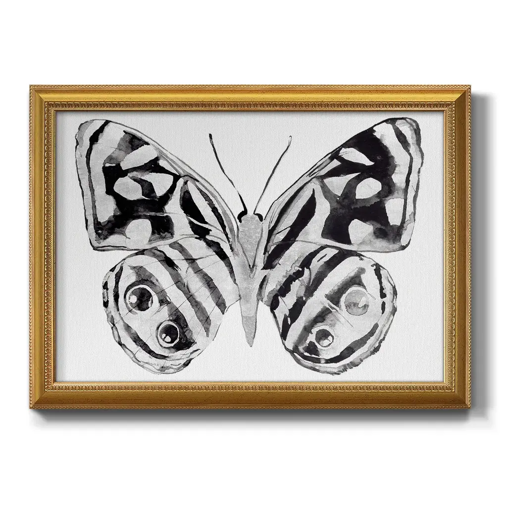 Monochrome Wings Whole II Premium Framed Canvas- Ready to Hang A Premium Framed Canvas created to last. Framed in distressed wood and available in an array of sizes and colors Featuring a beveled a solid wood stretcher bar, each piece comes ready to hand 3 SIZES AVAILABLE 16''X20'' - Overall Size 18'X27'' - Overall Size 24''x36'' - Overall Size Each piece is made to order. Each piece comes with hanging hardware. Made in the USA Ready to Hang Giclee Paper Print Acrylic Glass Beveled Matt Board
