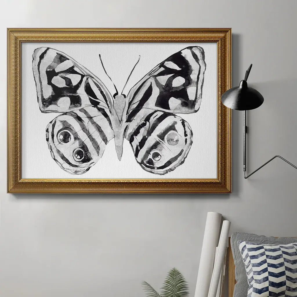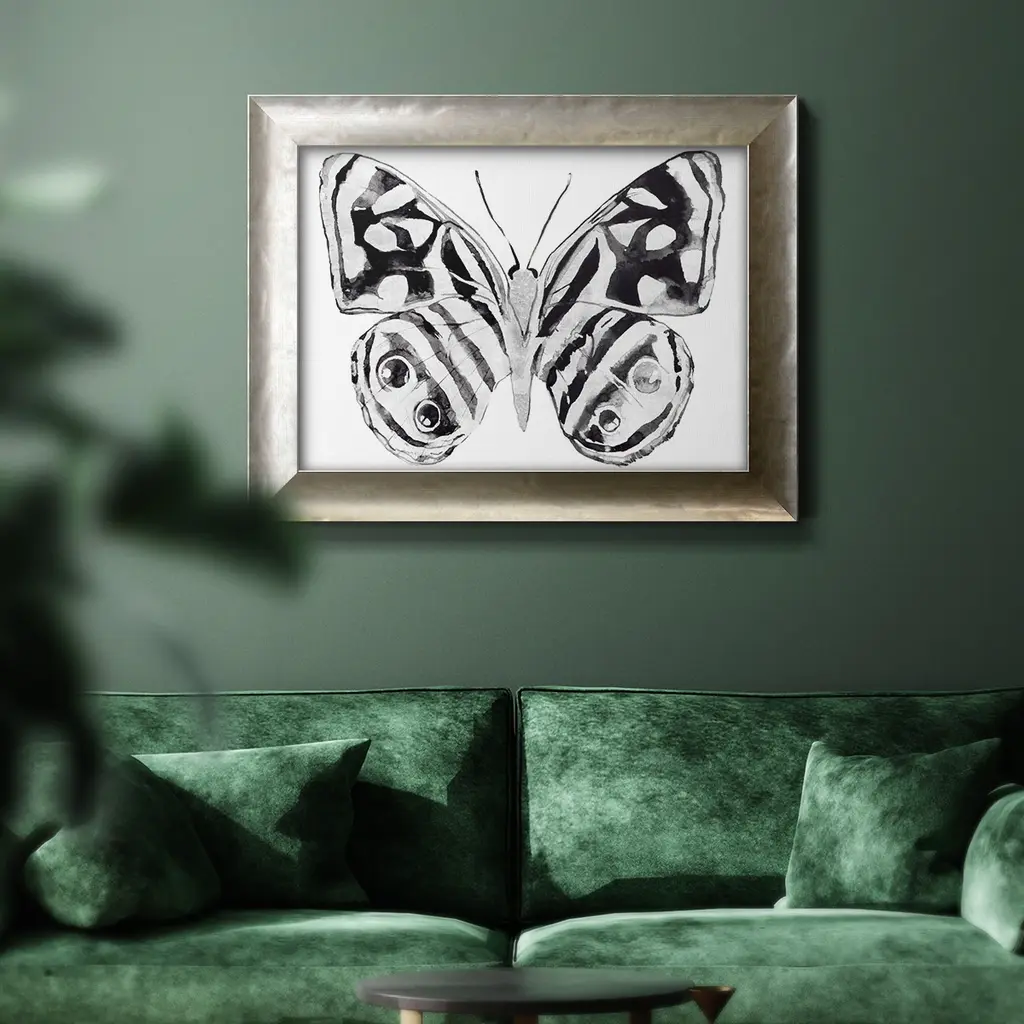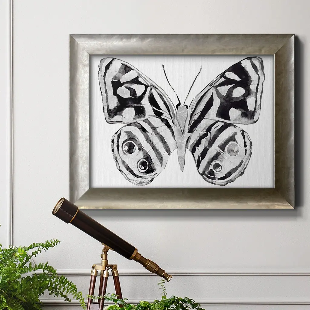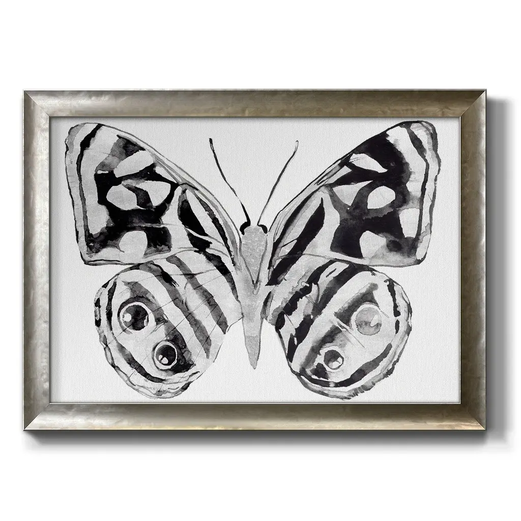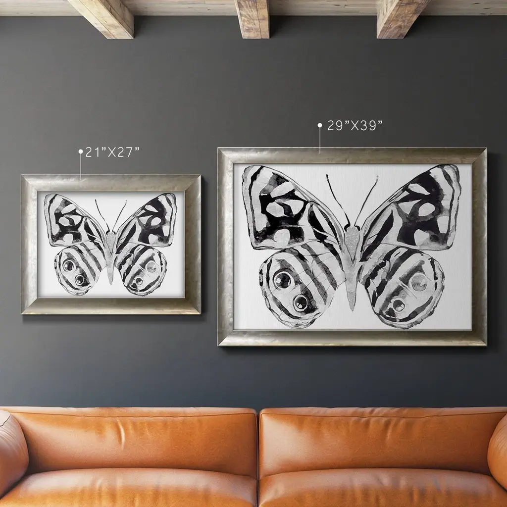 Monochrome Wings Whole II Premium Framed Canvas- Ready to Hang A Premium Framed Canvas created to last. Framed in distressed wood and available in an array of sizes and colors Featuring a beveled a solid wood stretcher bar, each piece comes ready to hand 3 SIZES AVAILABLE 16''X20'' - Overall Size 18'X27'' - Overall Size 24''x36'' - Overall Size Each piece is made to order. Each piece comes with hanging hardware. Made in the USA Ready to Hang Giclee Paper Print Acrylic Glass Beveled Matt Board