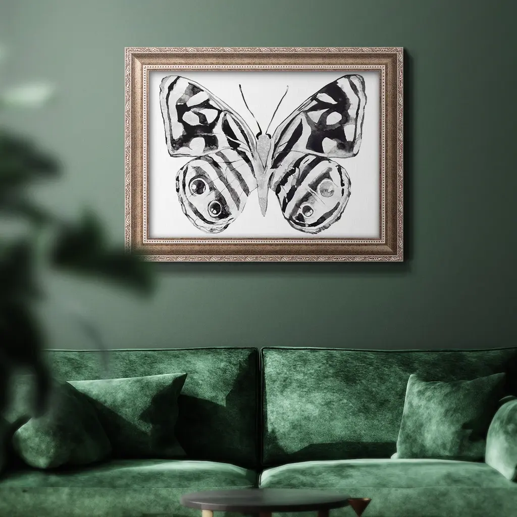 Monochrome Wings Whole II Premium Framed Canvas- Ready to Hang A Premium Framed Canvas created to last. Framed in distressed wood and available in an array of sizes and colors Featuring a beveled a solid wood stretcher bar, each piece comes ready to hand 3 SIZES AVAILABLE 16''X20'' - Overall Size 18'X27'' - Overall Size 24''x36'' - Overall Size Each piece is made to order. Each piece comes with hanging hardware. Made in the USA Ready to Hang Giclee Paper Print Acrylic Glass Beveled Matt Board