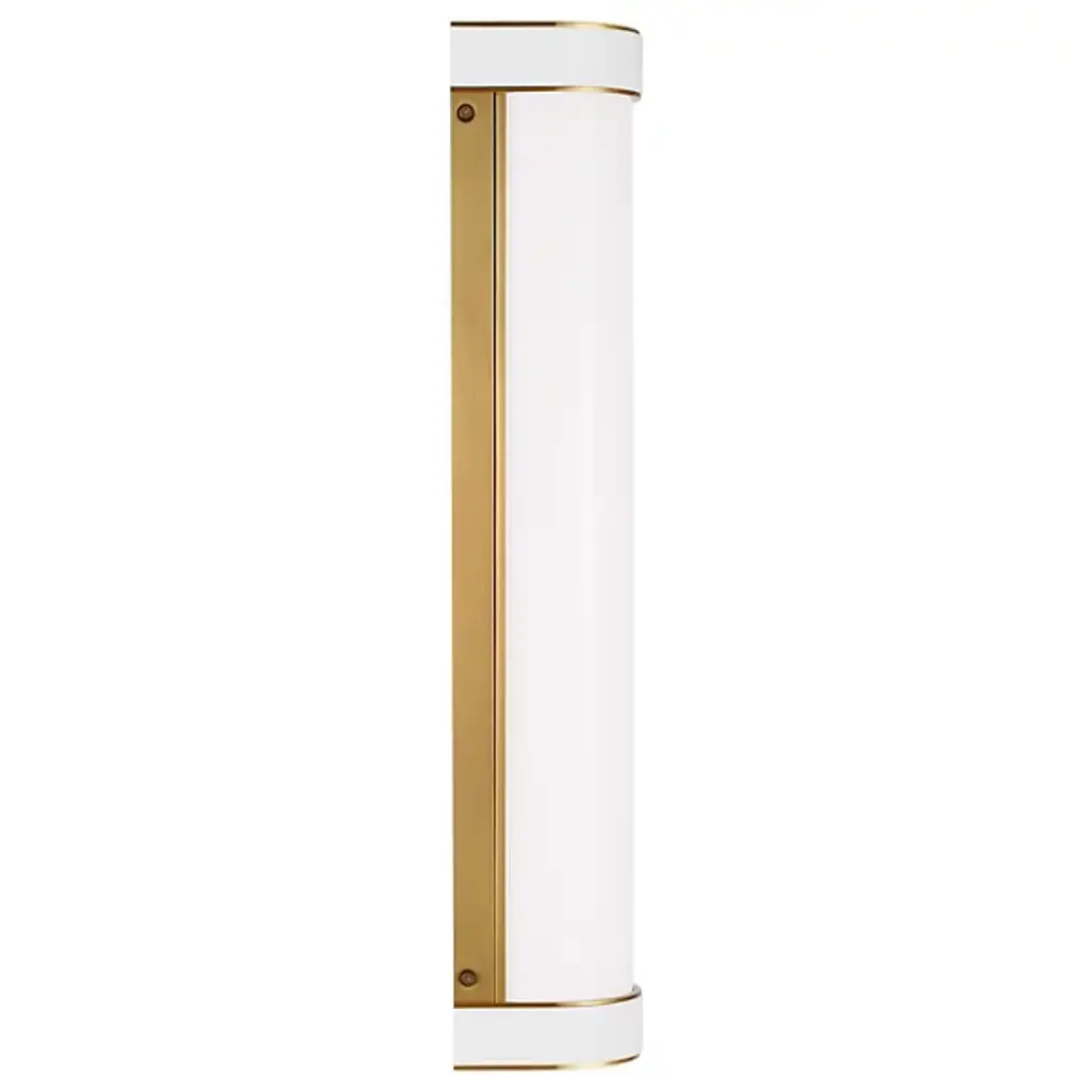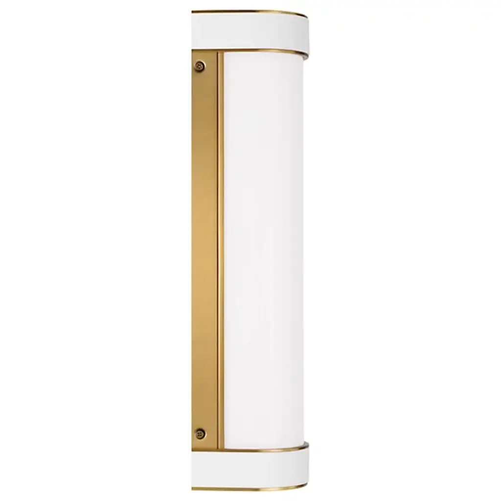 It’s easy finding a place for the minimalist and regal geometry of the Monroe LED Vanity Light from Visual Comfort Studio, formerly known as kate spade new york, It evokes classical columns in its silhouette. Sitting flush against the wall with half-cylinders, it rests in tight architectural features with a tight composition. It catches one’s attention with a pair of rings that receive a popping, glistening ring trim. A milk-white glass slots in through the center, hiding the lamping inside for glare-reduction purposes. The curvy glass shade casts a mellow glow on its sides against the wall. The light enters the room as a rich ambiance.
