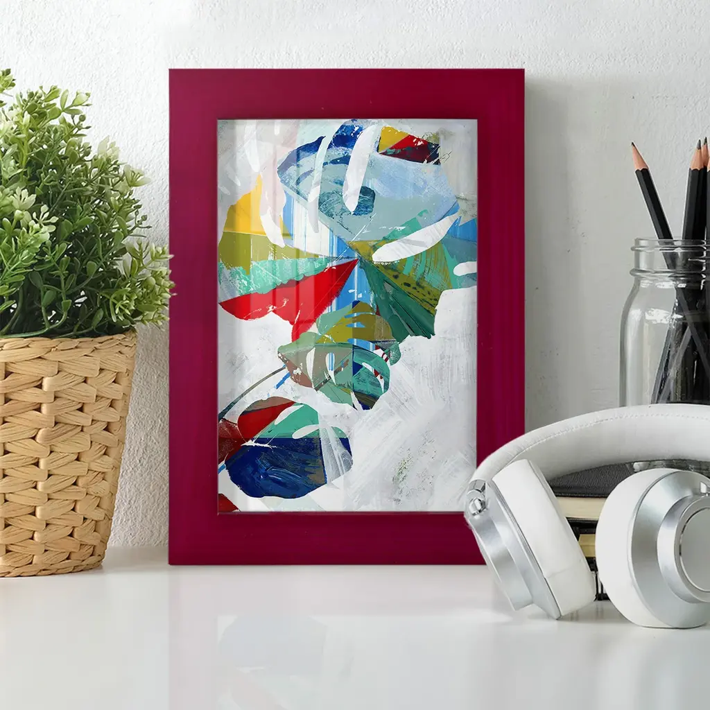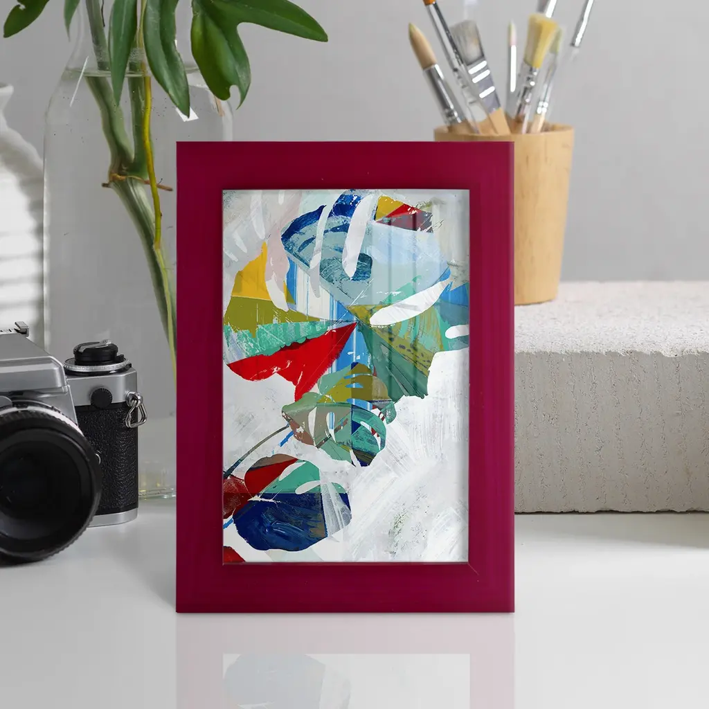 Monstera Ix -Framed Print W/glass-Cherry Red - 4X6 - Maple