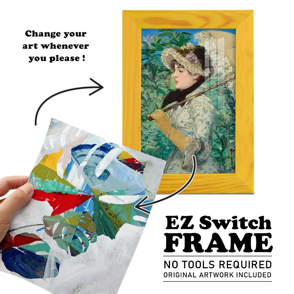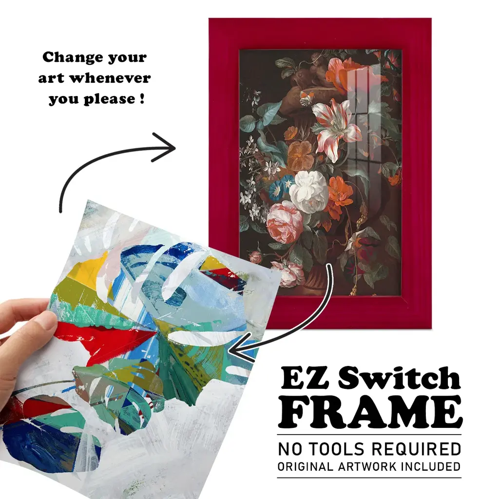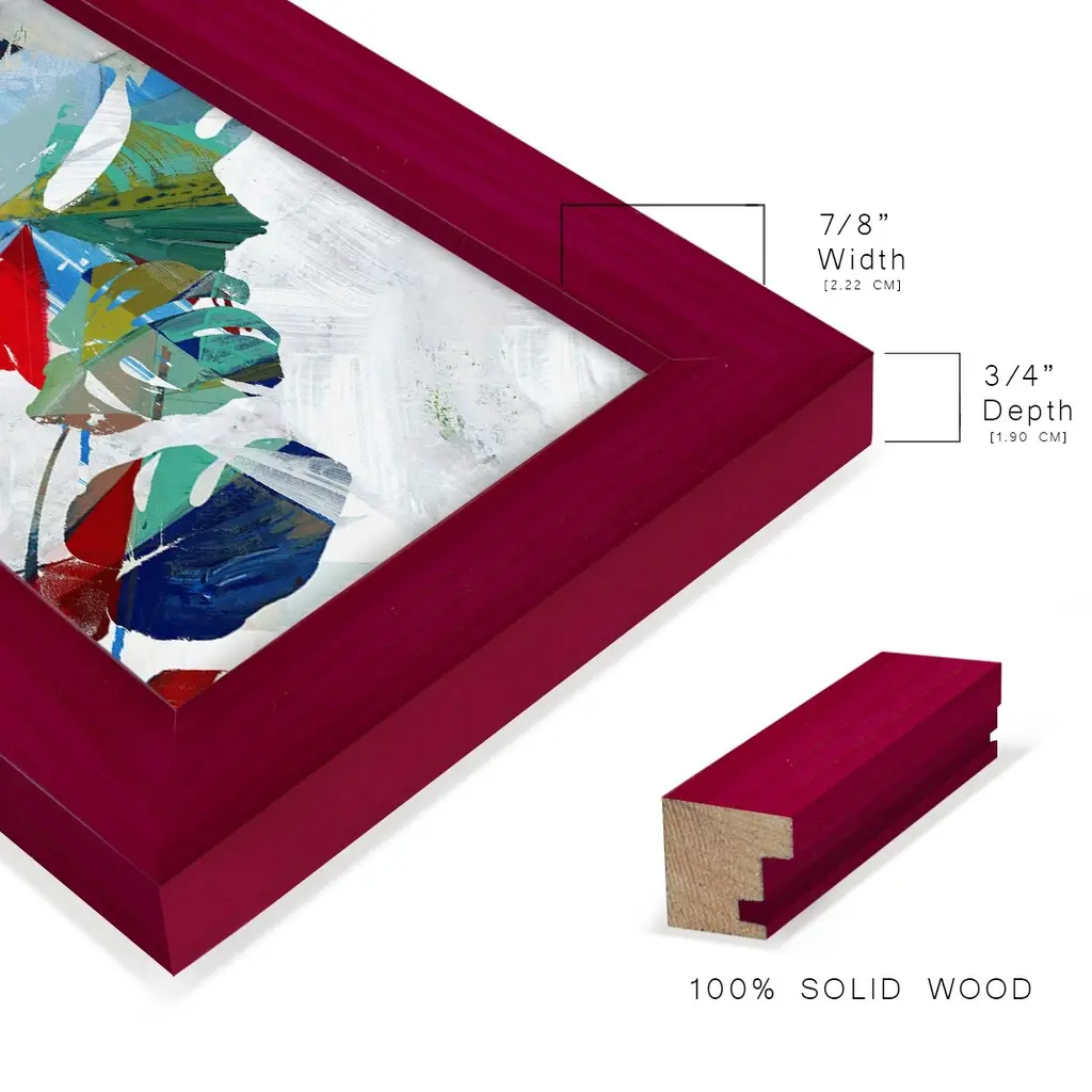 Monstera IX -EZ SWITCH Framed Print w/glass-Cherry Red A delightful, framed print. Featuring a solid wood frame with real wood glass. This premium print is giclee quality. In addition, every frame features a removable back and table top stand. This allows you to change your art in the future or to just stand the art on a table for a new look. We are sure you'll enjoy our new series of EZ SWITCH Framed Art. Solid Wood Frame Real Glass Removable / Replaceable Art Built in Tabletop Stand Sizes range from 4x6 up to 12x15 - buy just one or pair them up as sets as you see fit.