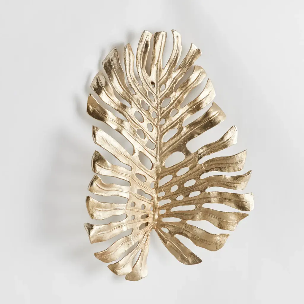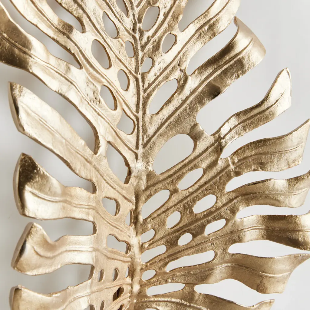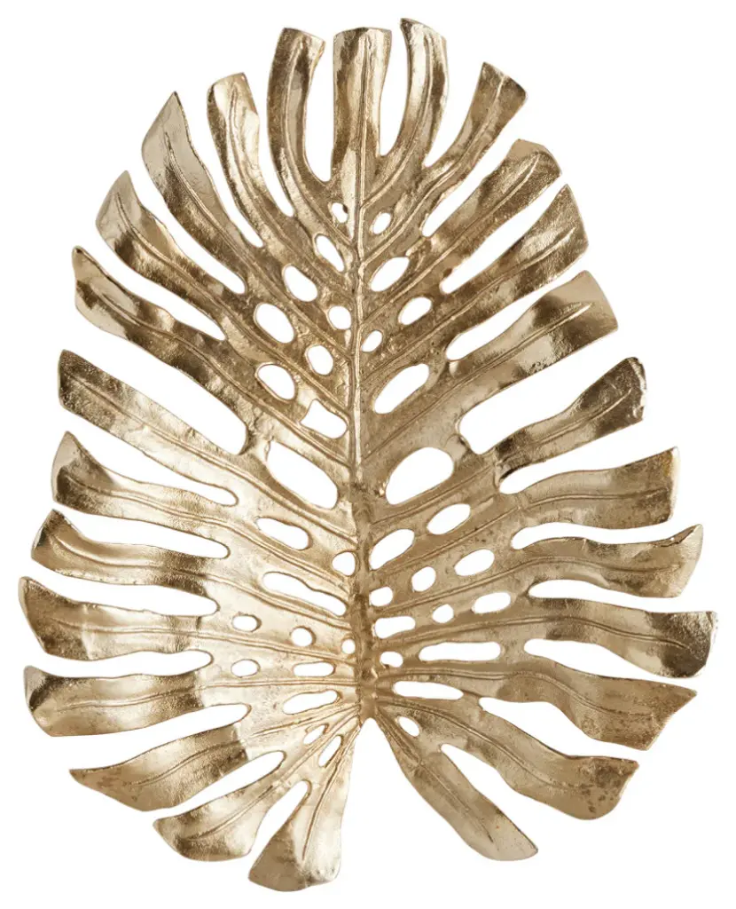 What a stunner! Cast from an original Monstera leaf with all the natural curves and scale of the real thing, this unique wall accent is sure to command the room. Finish: Gold . Realistic grand scale. Made of cast aluminumSize: 23.5 x 4 x 19 inches