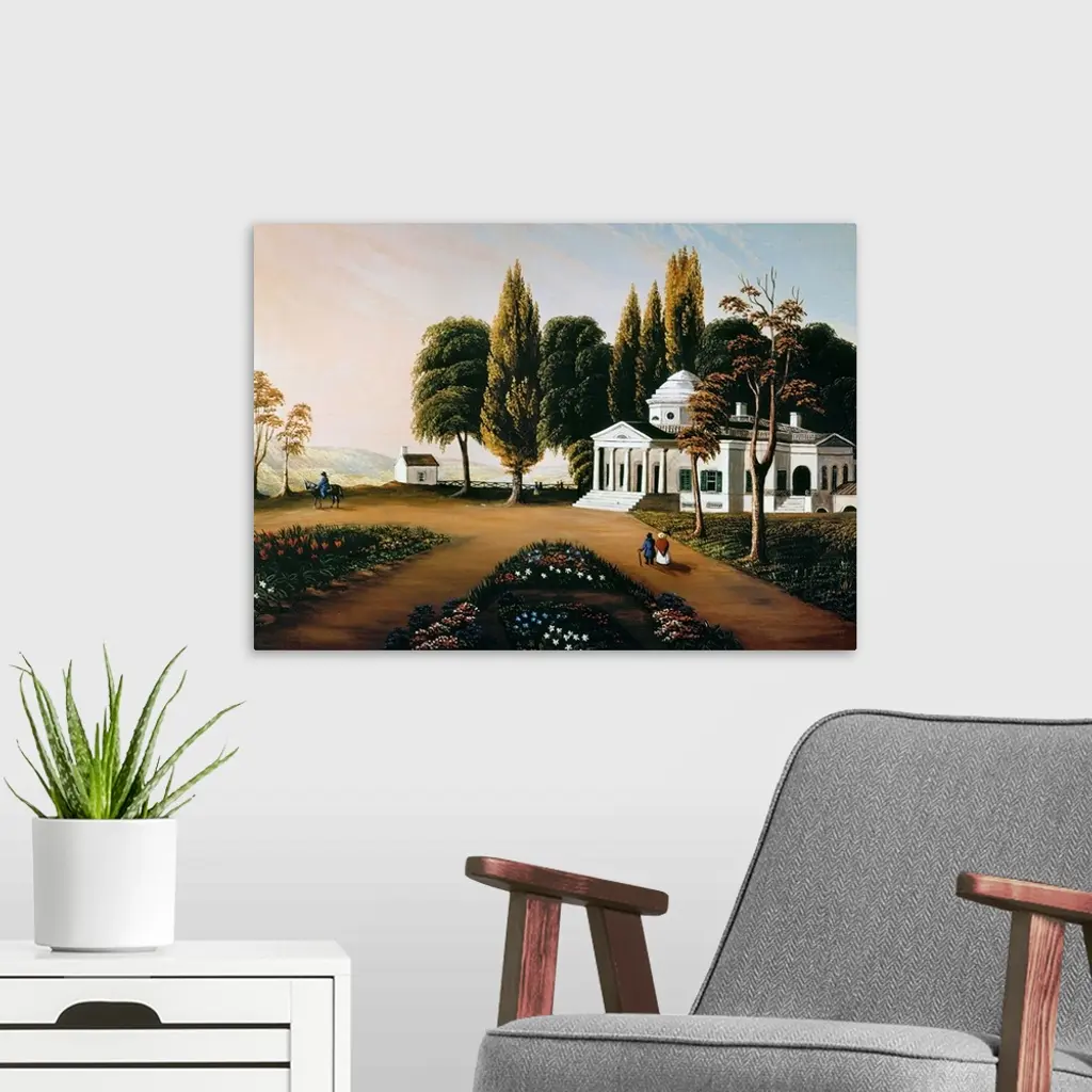 Monticello. the Home Of thomas Jefferson Near Charlottesville, Virginia. Oil On Canvas, 19th Century, By An Unknown Artist After the Painting By George Cooke.