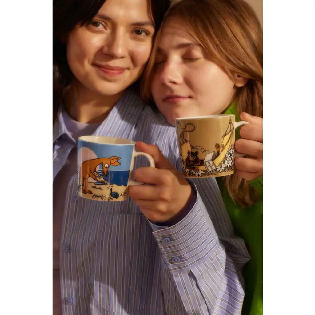 The Muskrat mug by Moomin Arabia features a seldom-seen character, a serious-minded philosopher who prefers the company of his own pessimistic thoughts or perhaps a book of equally pessimistic nature. In Muskrat's view, everything is futile – a sentiment he is sure to share with anyone around him – yet he insists on maintaining his own dignity. Arabia's Moomin Classics tableware collection brings to life the cherished inhabitants of Moominvalley across its mugs, bowls, and plates. This collection is a fusion of Finnish cultural icons: Tove Jansson, the creator of the Moomins, and Kaj Franck, a legendary designer. Featuring illustrations drawn from Jansson's original Moomin artworks and shaped by the timeless forms of Franck's Teema tableware, this series is a celebration of Finnish design and storytelling.