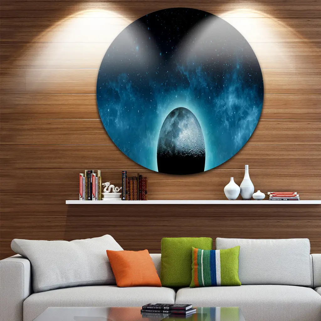 Moon In The Front Of Galaxies, Large Disc Metal Wall Art Landscape, 23"