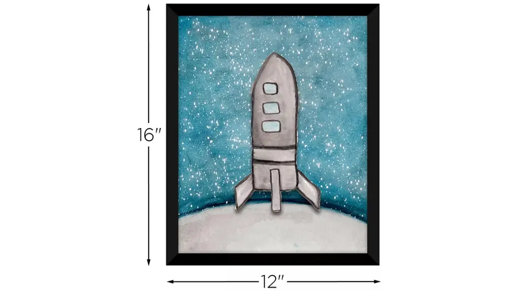 Zoom, zoom, zoom, we're going to the moon! Featured in a nursery or kid's room, this simply illustrated rocket ship against a starry nighttime sky is sure to fuel a youngster's dreams. Choose Moon Voyage III or another rocket in the series including Moon Voyage I and Moon Voyage II.