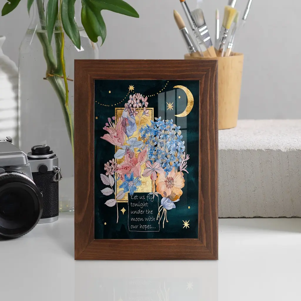 Moonlight Flowers I -EZ SWITCH Framed Print w/glass-Cherry Red A delightful, framed print. Featuring a solid wood frame with real wood glass. This premium print is giclee quality. In addition, every frame features a removable back and table top stand. This allows you to change your art in the future or to just stand the art on a table for a new look. We are sure you'll enjoy our new series of EZ SWITCH Framed Art. Solid Wood Frame Real Glass Removable / Replaceable Art Built in Tabletop Stand Sizes range from 4x6 up to 12x15 - buy just one or pair them up as sets as you see fit.