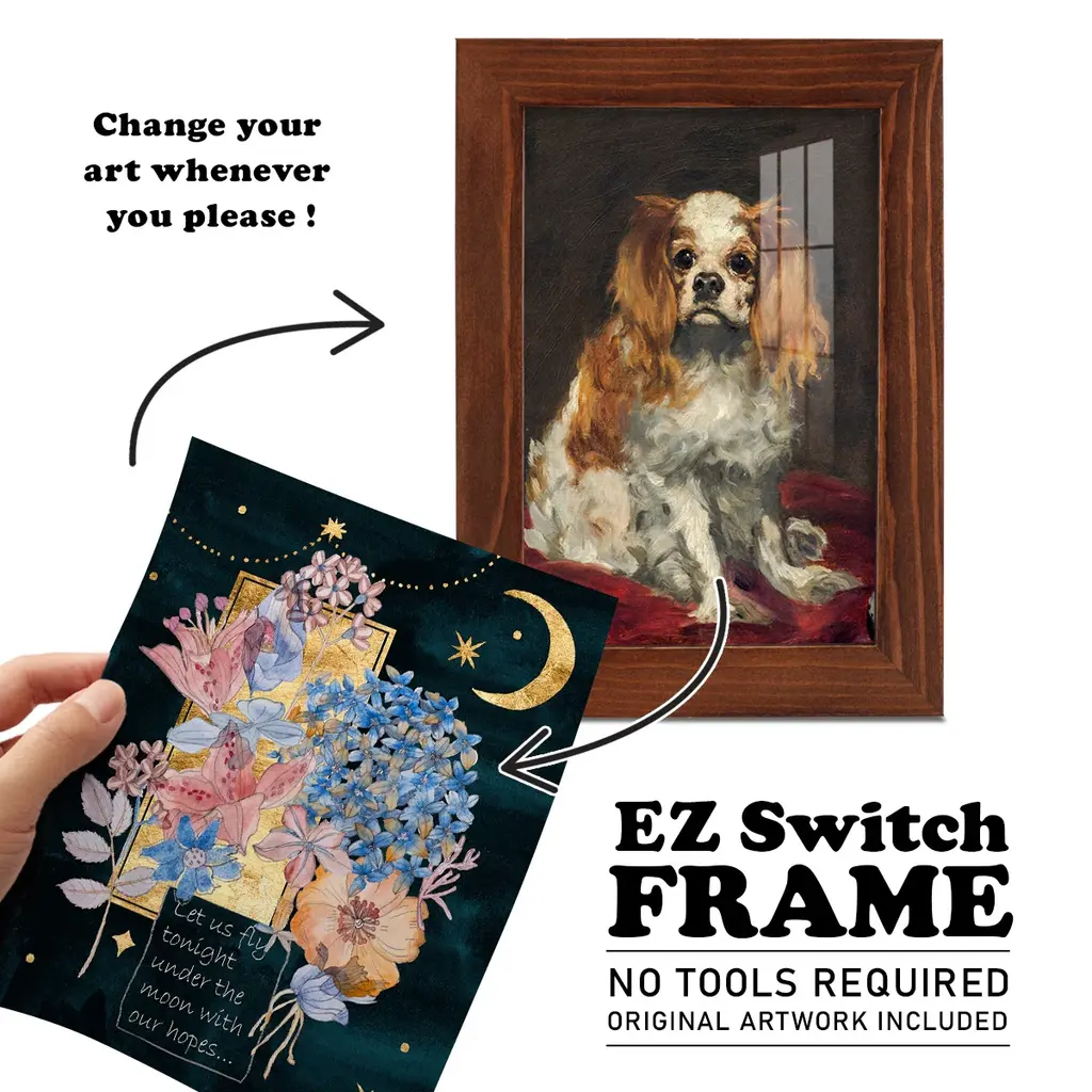 Moonlight Flowers I -EZ SWITCH Framed Print w/glass-Cherry Red A delightful, framed print. Featuring a solid wood frame with real wood glass. This premium print is giclee quality. In addition, every frame features a removable back and table top stand. This allows you to change your art in the future or to just stand the art on a table for a new look. We are sure you'll enjoy our new series of EZ SWITCH Framed Art. Solid Wood Frame Real Glass Removable / Replaceable Art Built in Tabletop Stand Sizes range from 4x6 up to 12x15 - buy just one or pair them up as sets as you see fit.