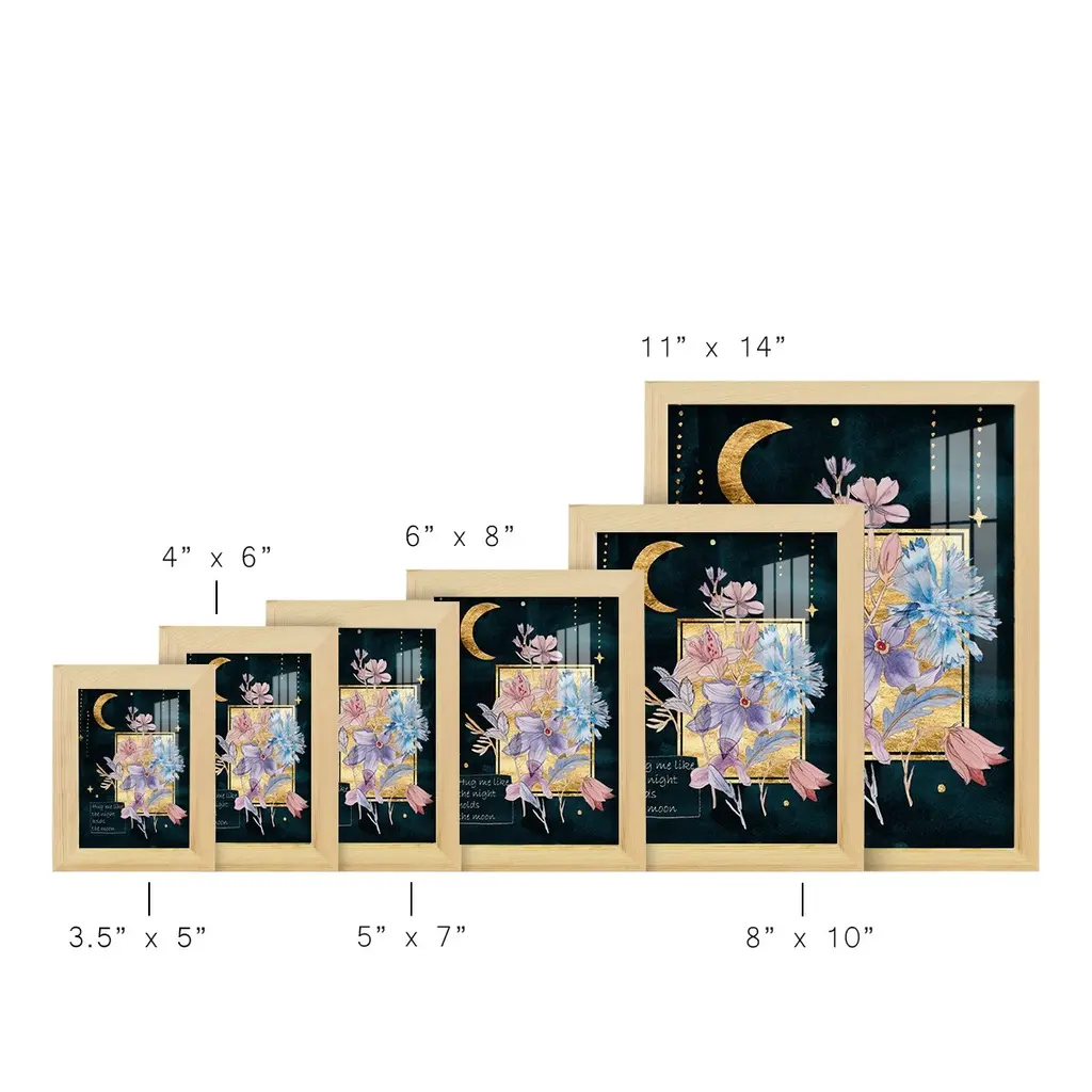 Moonlight Flowers III -EZ SWITCH Framed Print w/glass-Cherry Red A delightful, framed print. Featuring a solid wood frame with real wood glass. This premium print is giclee quality. In addition, every frame features a removable back and table top stand. This allows you to change your art in the future or to just stand the art on a table for a new look. We are sure you'll enjoy our new series of EZ SWITCH Framed Art. Solid Wood Frame Real Glass Removable / Replaceable Art Built in Tabletop Stand Sizes range from 4x6 up to 12x15 - buy just one or pair them up as sets as you see fit.