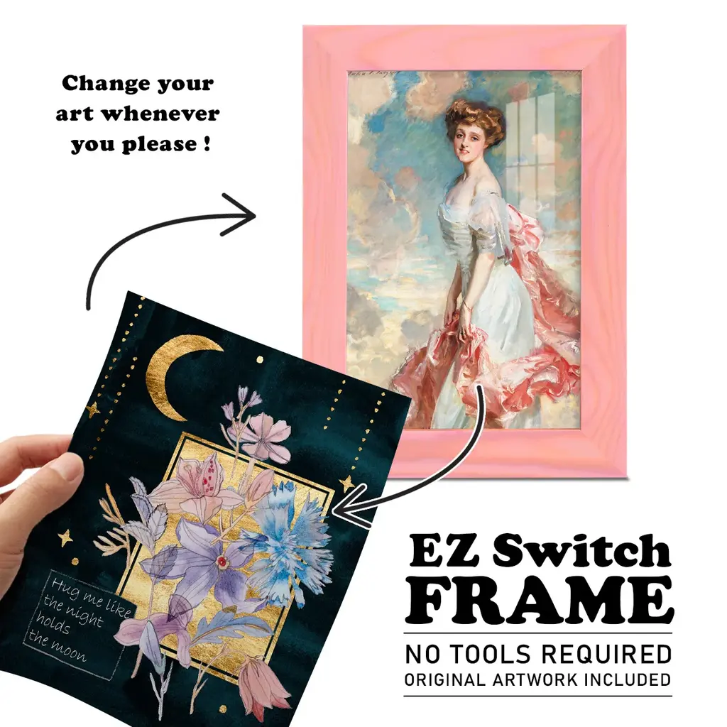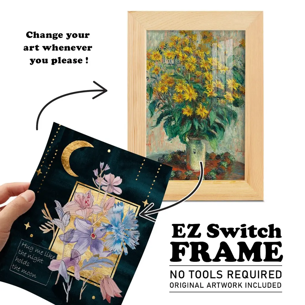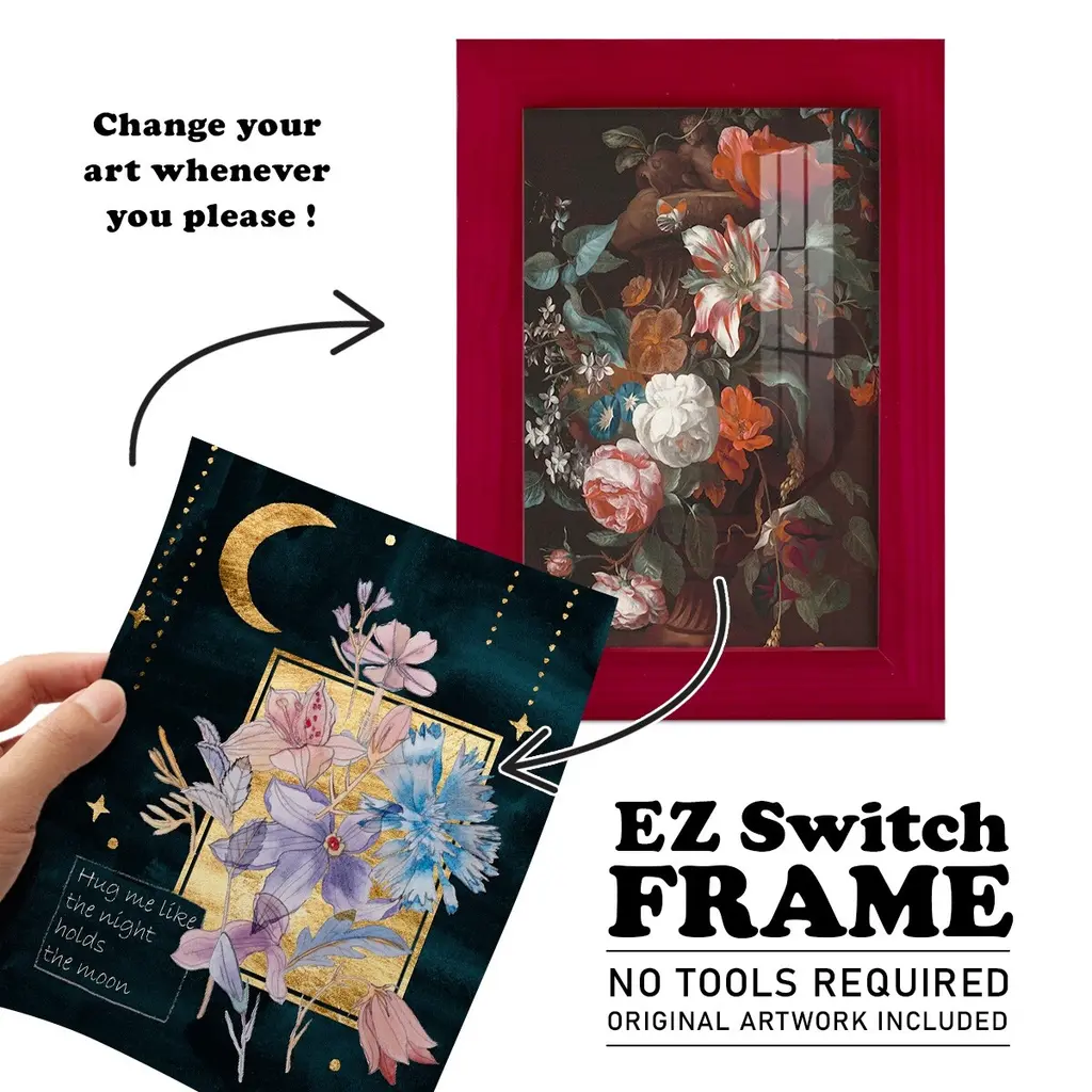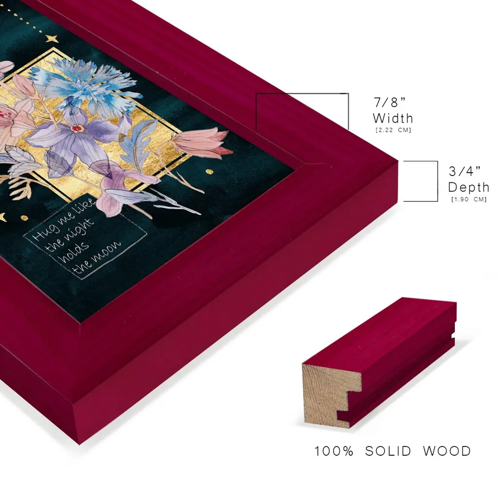 Moonlight Flowers III -EZ SWITCH Framed Print w/glass-Cherry Red A delightful, framed print. Featuring a solid wood frame with real wood glass. This premium print is giclee quality. In addition, every frame features a removable back and table top stand. This allows you to change your art in the future or to just stand the art on a table for a new look. We are sure you'll enjoy our new series of EZ SWITCH Framed Art. Solid Wood Frame Real Glass Removable / Replaceable Art Built in Tabletop Stand Sizes range from 4x6 up to 12x15 - buy just one or pair them up as sets as you see fit.