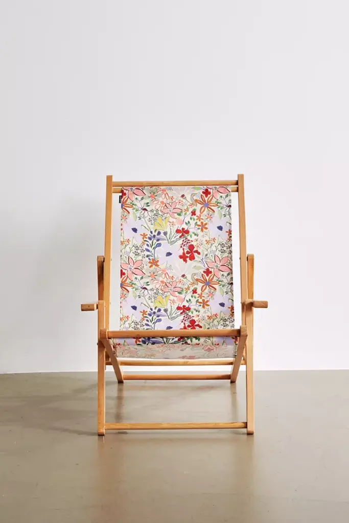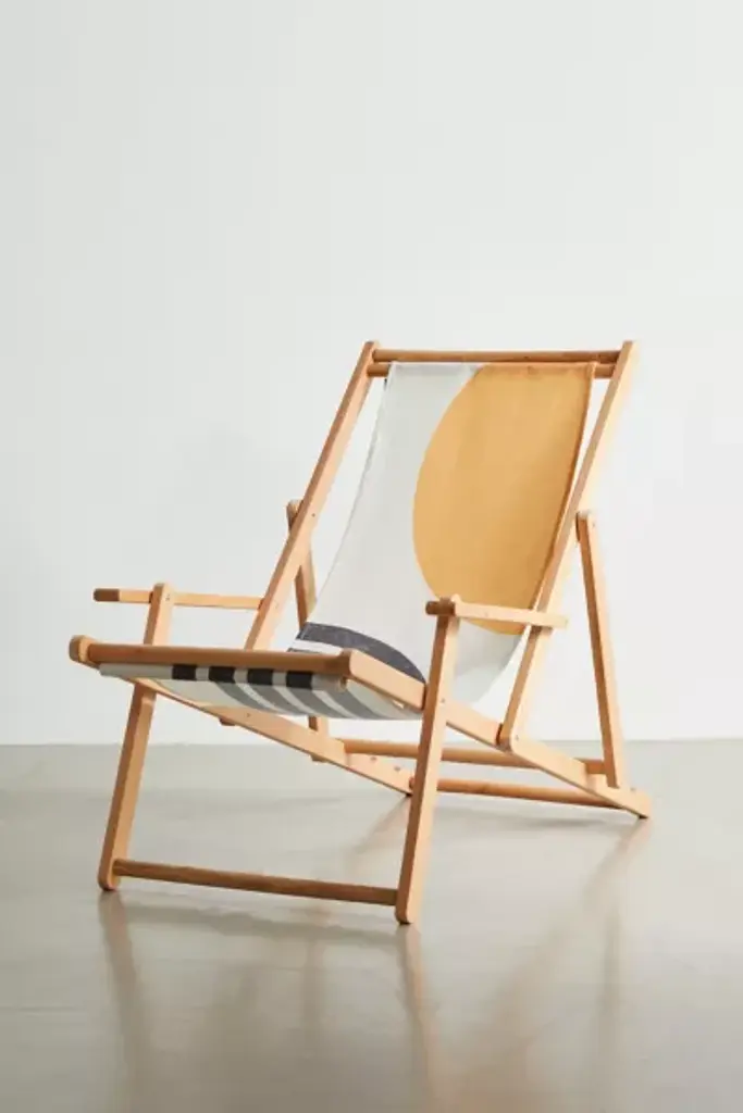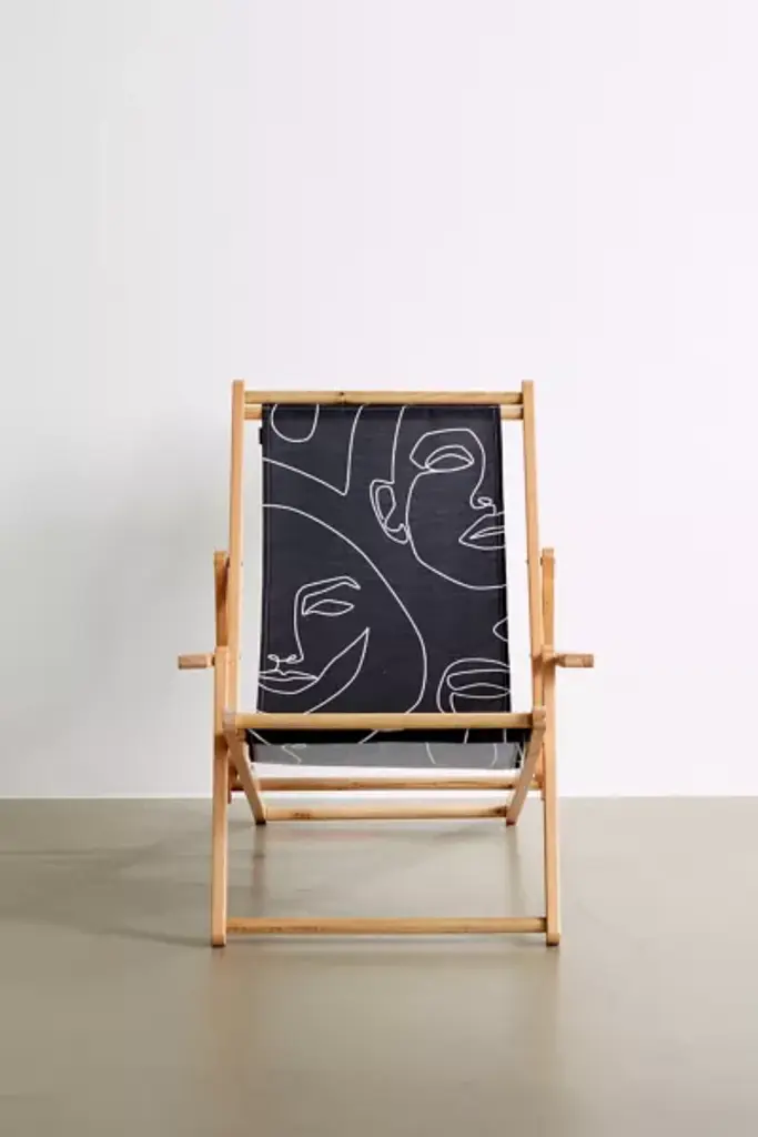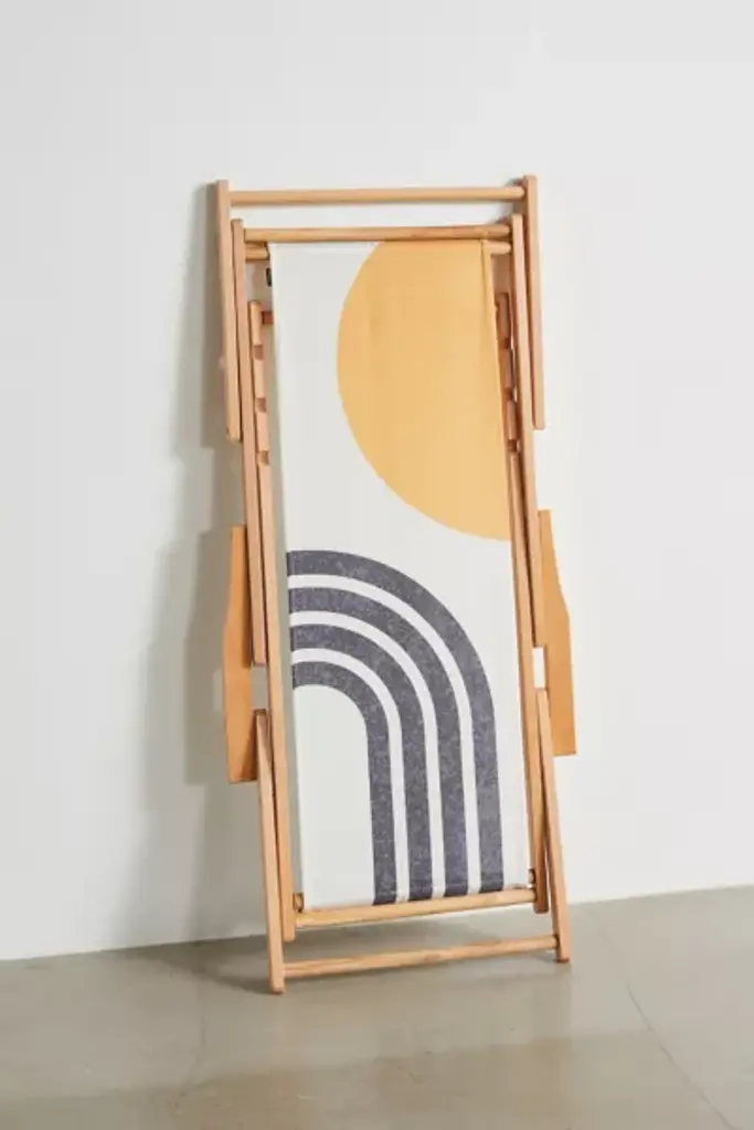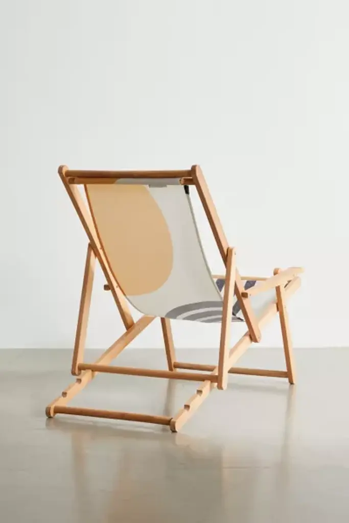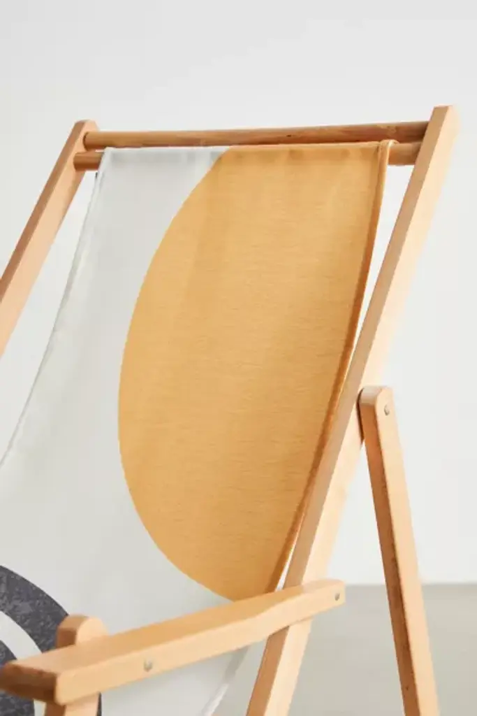 Lounge easy on sunny days in this folding sling chair made by Deny Designs with abstract, mid-century-inspired artwork by MoonlightPrint. Featuring a solid wood frame that reclines to three different angles, topped with a polyester sling seat patterned with a crisp geometric print and finished with UV-resistant and water-resistant coating. Deny Designs is an ever-changing collective of talented artists who churn out fresh, statement-making pieces. These unique items are a fun and easy way to infuse an ordinary room with effortless originality, and a portion of each purchase goes toward supporting art communities worldwide. This custom furniture piece will be made to order just for you. **Features** \- Folding lounge chair by Deny Designs \- Features allover artwork for a bold statement piece \- UV-resistant \- Water-resistant \- Outdoor safe \- Made to order just for you **Content + Care** \- Wood, polyester \- Spot clean \- Outdoor safe - keep dry and cover or store indoors when not in use or in the event of inclement weather. \- Made in the USA **Size** \- Dimensions: 24.5"l x 45"w x 32"h \- Leg height/clearance: 6" \- Weight: 8 lbs \- Shipping package dimensions: 53"l x 25"w x 3"h \- Shipping package weight: 9 lbs