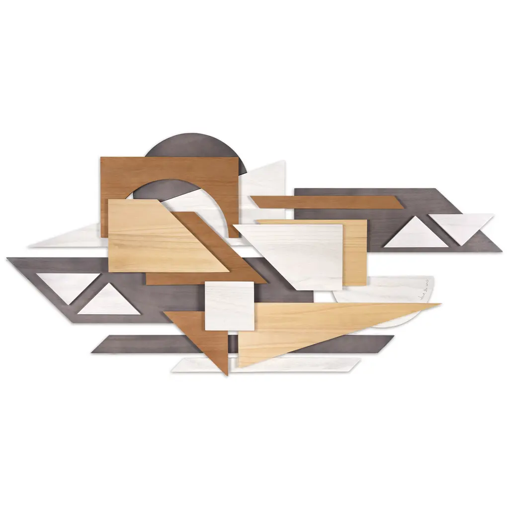 This abstract wall sculpture is a masterpiece of intricate design, created from a variety of differently-shaped pieces but predominantly pointed shapes of solid paulownia wood. They are arranged in a way that creates a sense of fluidity, like an arrow in motion. The colors of this sculpture are a beautiful mix of sandy taupe, alabaster, natural wood and smokey gray, giving this abstract a sense of depth and contrast. Laser engraved with the artist Jane Yu's signature, this wall sculpture can be hunged horizontally or vertically; and when paired with "Moonlit Mist II" you are surely giving your walls a chick look. Please note that since these abstracts are made from real solid wood, the colors and patterns will be unique in each sculpture. Therefore, the image shown may be slightly different from the actual artwork. Please note that since these abstracts are made from real solid wood, the colors and patterns will be unique in each sculpture. Therefore, the image shown may be slightly different from the actual artwork.