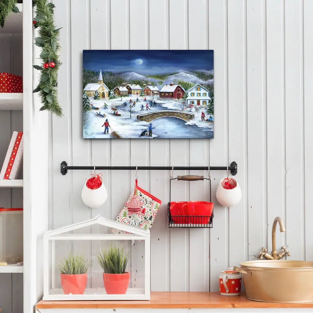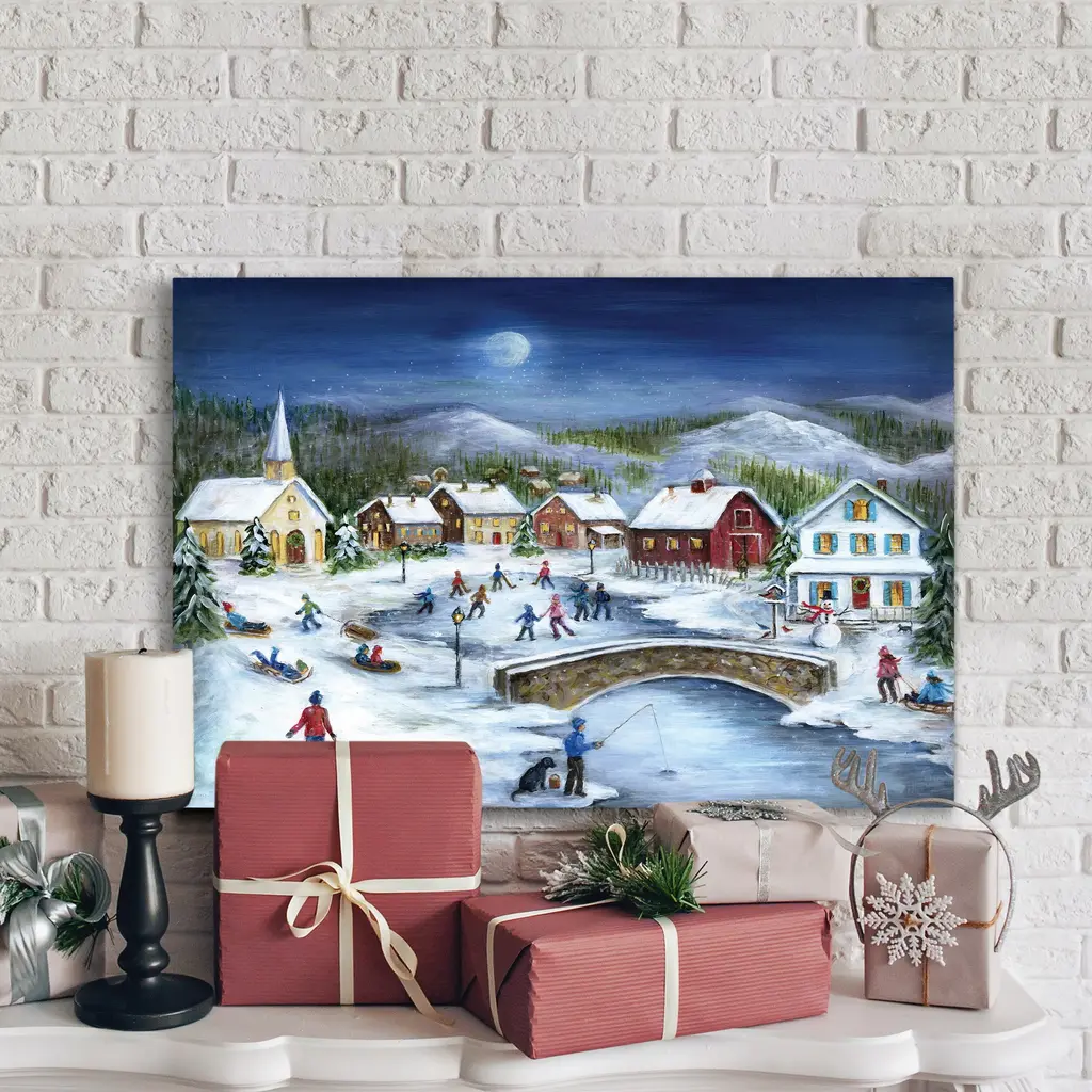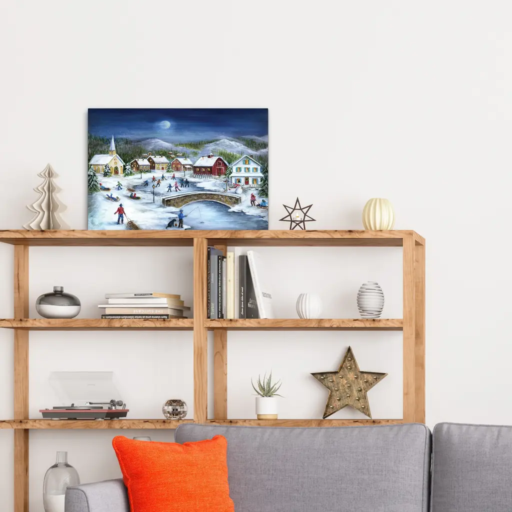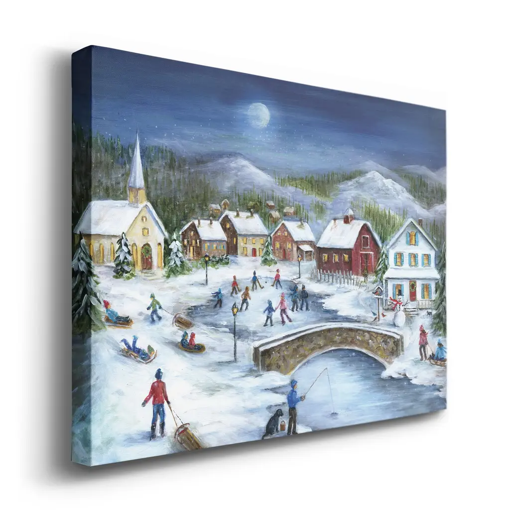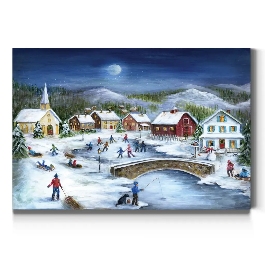 Moonlit Skaters-Premium Gallery Wrapped Canvas - Ready To Hang - 12x18
