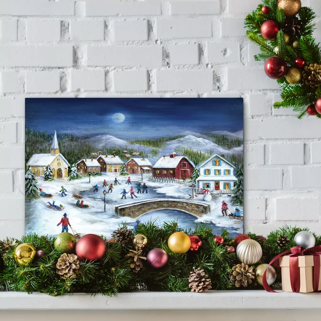 Moonlit Skaters-Premium Gallery Wrapped Canvas - Ready To Hang - 32x48