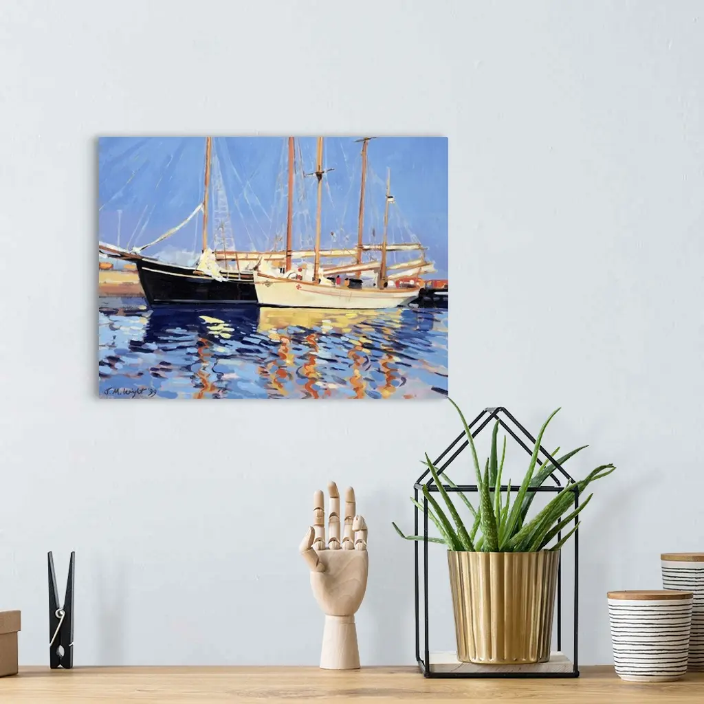 Contemporary painting of sailboats in the harbor at Skagen, Denmark.