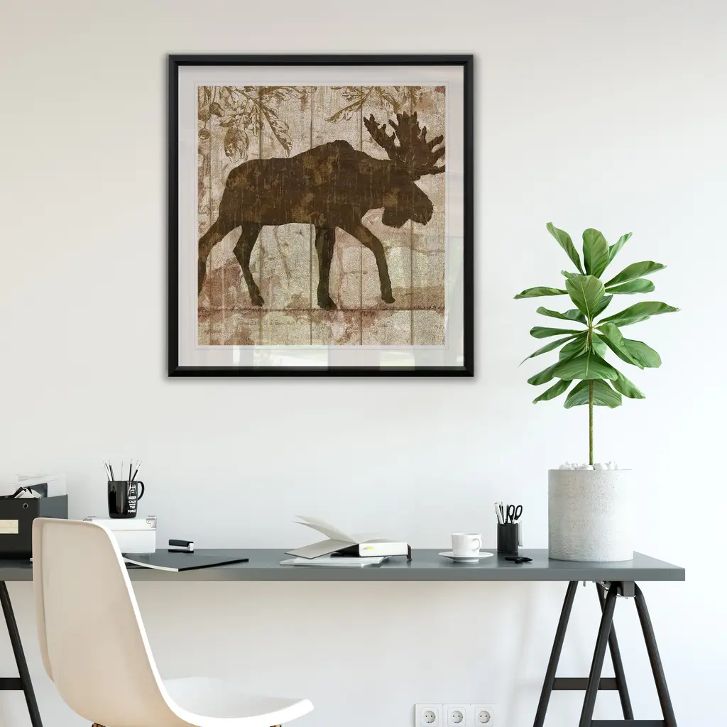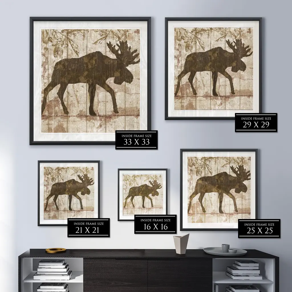 Moose Crossing -Framed Giclee Print A premium framed giclee print Printed using the last archival inks. Each print is carefully printed and framed by hand. Each piece features a 2'' Beveled matt board, acrylic glass and comes ready to hand. 5 SIZES AVILABLE 16''x16''- Overall Size 24''x22''- Overall Size 28''x28''' - Overall Size 32''x32''' - Overall Size 38''x38'' - Overall Size ** Overall size may vary slightly from piece to piece Each piece is made to order. Built to Last Each piece comes ready to hang Archival Ink 2'' Matt Board Assembled by hand in the America